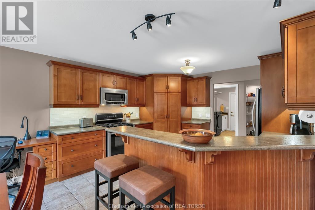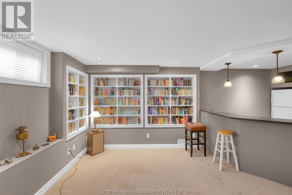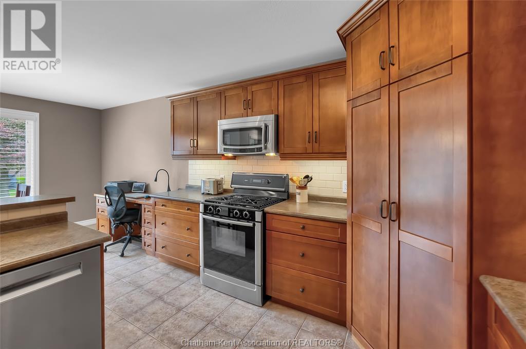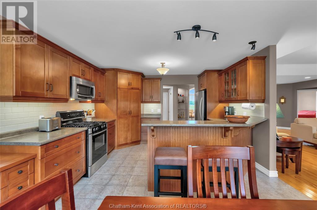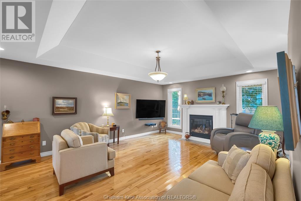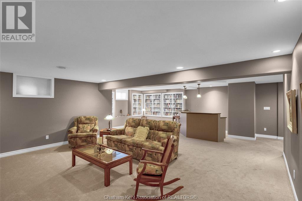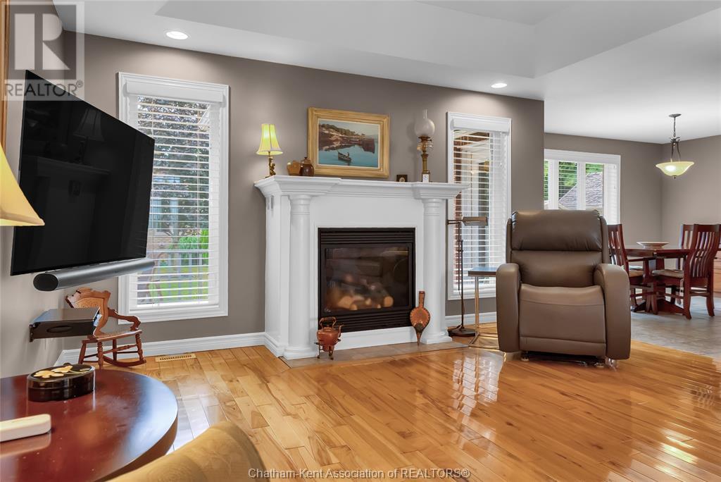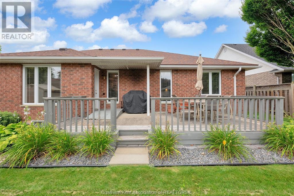 Gorgeous 3+2 bedroom, 3 full bathroom rancher on one of Chatham's most desired streets! Custom built in 2006 by Gilles Michaud. The home features a superb layout centred around a warm and inviting living room with beautiful hardwood maple flooring and a gas fireplace, a large custom kitchen with a peninsula and breakfast nook, and a formal dining room accented by pillars and a picture window for extra natural light. The large primary suite is positioned at the north end of the home with a walk in closet and a full wheelchair accessible bathroom. 2 more good sized bedrooms and another full bathroom are located at the south end of the home. The fully finished basement offers a huge family room with a gas fireplace, built-in library and a wet bar with a fridge, 2 more bedrooms that can be used as a flex space for an office or home gym, tons of storage with a dedicated storage room and several large closets, a 3rd full bathroom, and a laundry/utility room. Systems have been updated with a variable speed gas furnace with central air (2 years), on-demand water heater, whole home surge protection, backup sump pump with an alarm, and the roof shingles are just 8 years old. The yard is kept in tip top condition with an in-ground sprinkler system. The true double garage provides lots of space for two full size vehicles. Appliances are included. Put it all together and you have a high end ranch with a premium location and it's as move-in-ready as it gets! Call now to book your viewing. (id:4555)