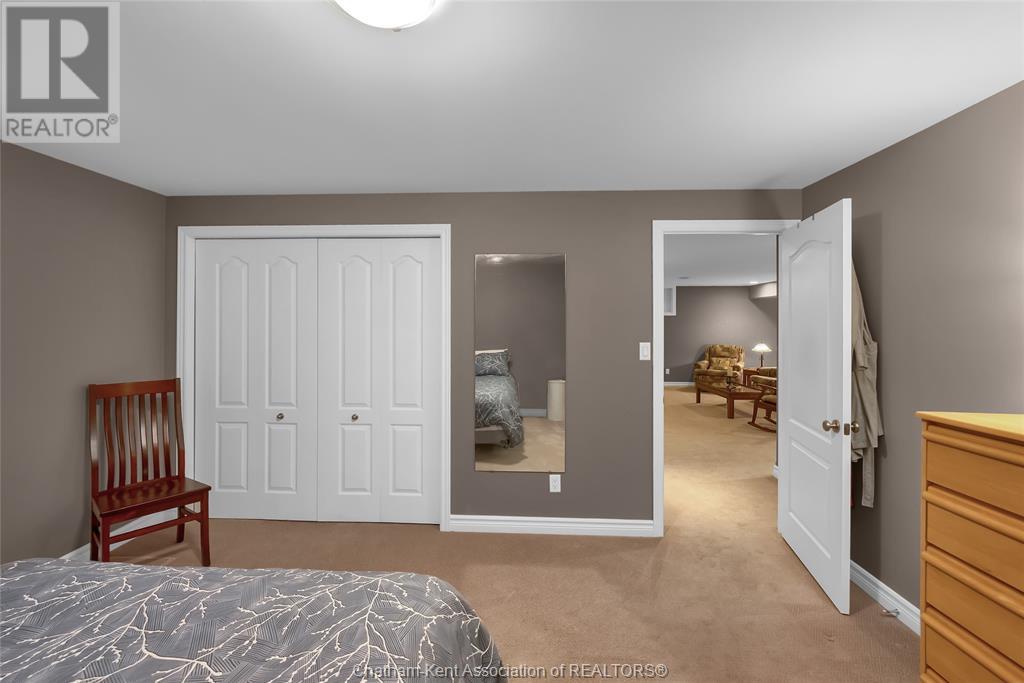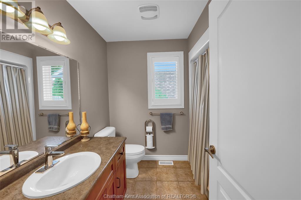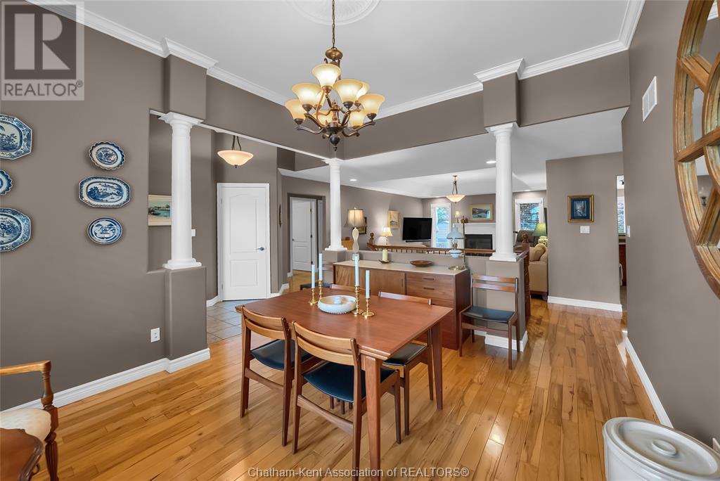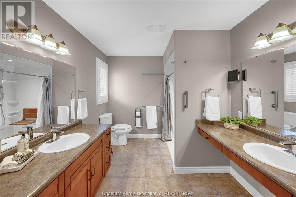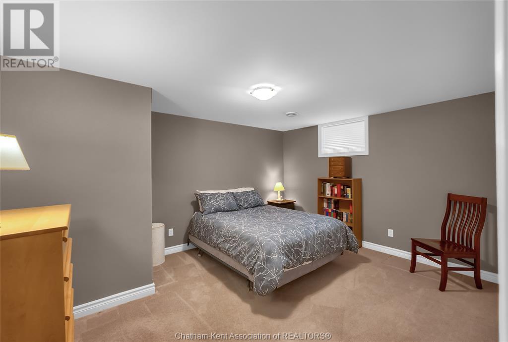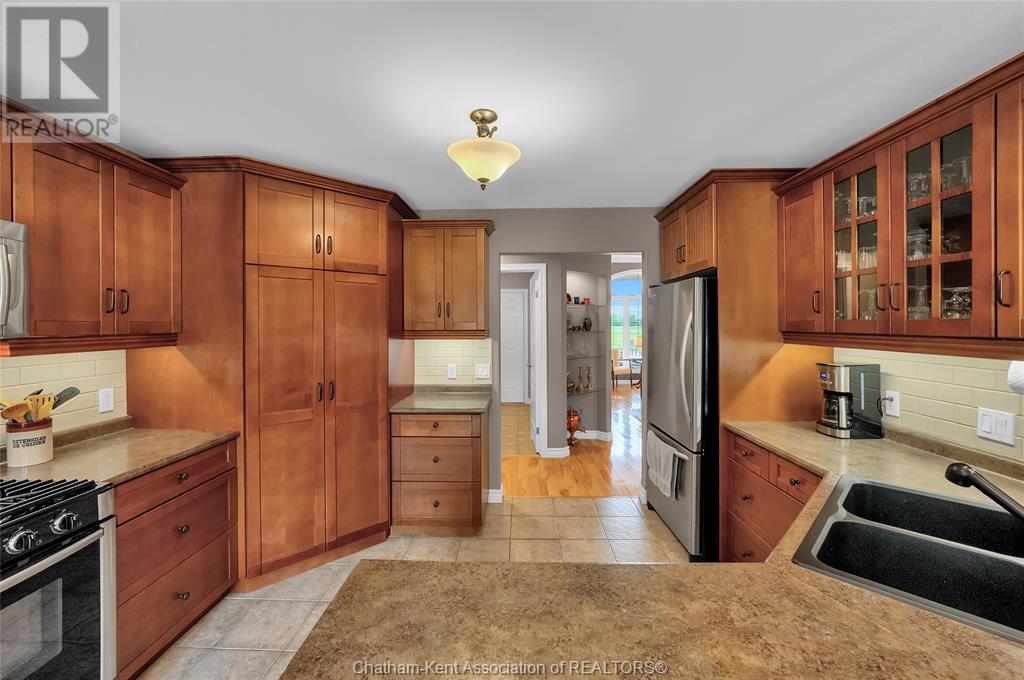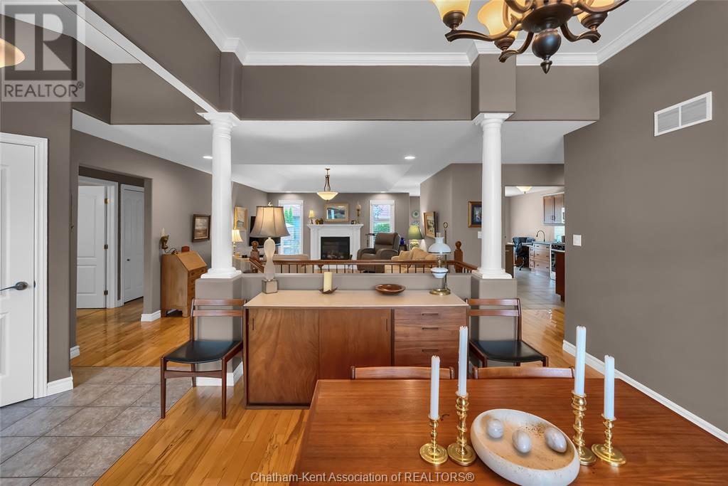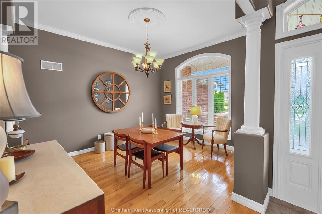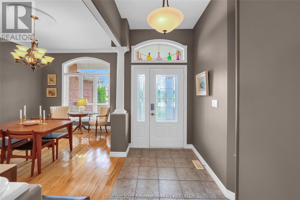 Gorgeous 3+2 bedroom, 3 full bathroom rancher on one of Chatham's most desired streets! Custom built in 2006 by Gilles Michaud. The home features a superb layout centred around a warm and inviting living room with beautiful hardwood maple flooring and a gas fireplace, a large custom kitchen with a peninsula and breakfast nook, and a formal dining room accented by pillars and a picture window for extra natural light. The large primary suite is positioned at the north end of the home with a walk in closet and a full wheelchair accessible bathroom. 2 more good sized bedrooms and another full bathroom are located at the south end of the home. The fully finished basement offers a huge family room with a gas fireplace, built-in library and a wet bar with a fridge, 2 more bedrooms that can be used as a flex space for an office or home gym, tons of storage with a dedicated storage room and several large closets, a 3rd full bathroom, and a laundry/utility room. Systems have been updated with a variable speed gas furnace with central air (2 years), on-demand water heater, whole home surge protection, backup sump pump with an alarm, and the roof shingles are just 8 years old. The yard is kept in tip top condition with an in-ground sprinkler system. The true double garage provides lots of space for two full size vehicles. Appliances are included. Put it all together and you have a high end ranch with a premium location and it's as move-in-ready as it gets! Call now to book your viewing. (id:4555)