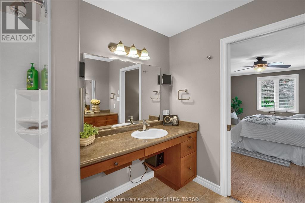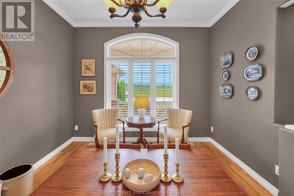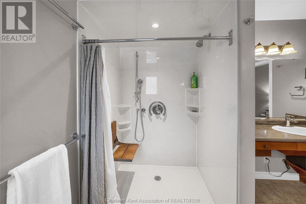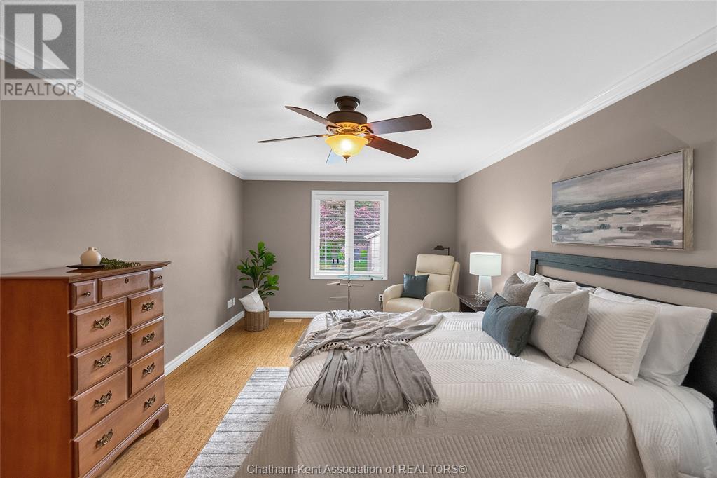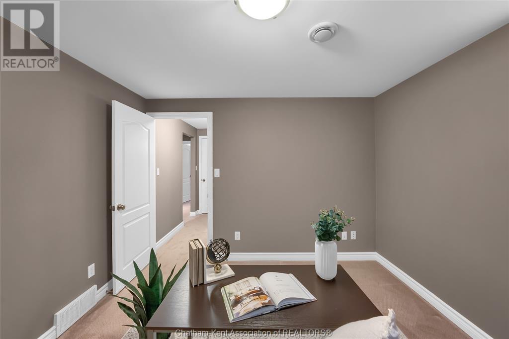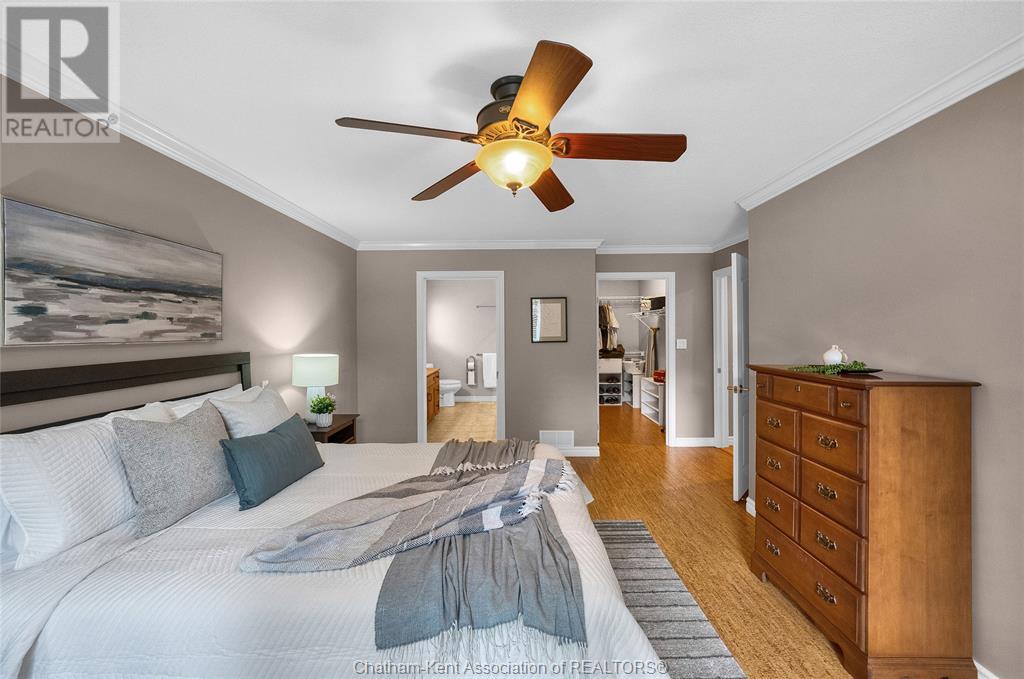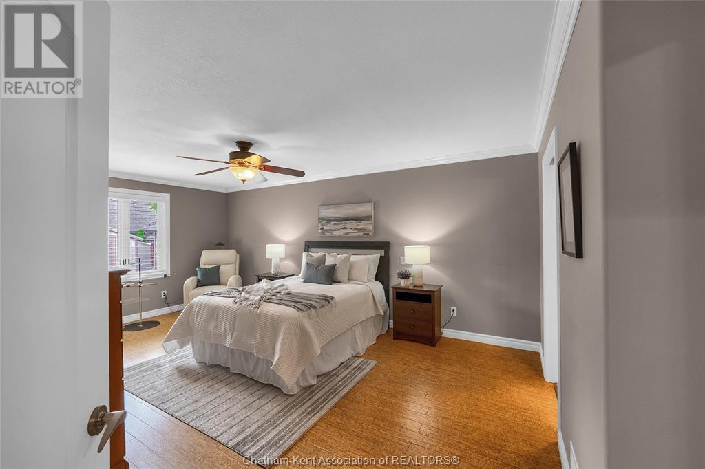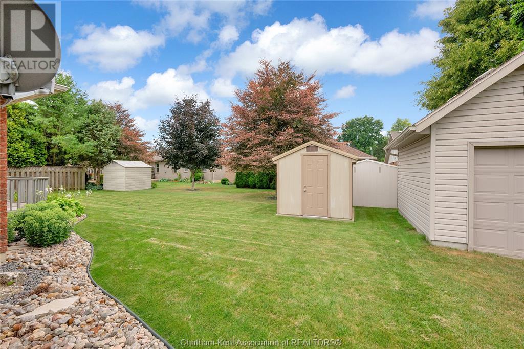 Gorgeous 3+2 bedroom, 3 full bathroom rancher on one of Chatham's most desired streets! Custom built in 2006 by Gilles Michaud. The home features a superb layout centred around a warm and inviting living room with beautiful hardwood maple flooring and a gas fireplace, a large custom kitchen with a peninsula and breakfast nook, and a formal dining room accented by pillars and a picture window for extra natural light. The large primary suite is positioned at the north end of the home with a walk in closet and a full wheelchair accessible bathroom. 2 more good sized bedrooms and another full bathroom are located at the south end of the home. The fully finished basement offers a huge family room with a gas fireplace, built-in library and a wet bar with a fridge, 2 more bedrooms that can be used as a flex space for an office or home gym, tons of storage with a dedicated storage room and several large closets, a 3rd full bathroom, and a laundry/utility room. Systems have been updated with a variable speed gas furnace with central air (2 years), on-demand water heater, whole home surge protection, backup sump pump with an alarm, and the roof shingles are just 8 years old. The yard is kept in tip top condition with an in-ground sprinkler system. The true double garage provides lots of space for two full size vehicles. Appliances are included. Put it all together and you have a high end ranch with a premium location and it's as move-in-ready as it gets! Call now to book your viewing. (id:4555)