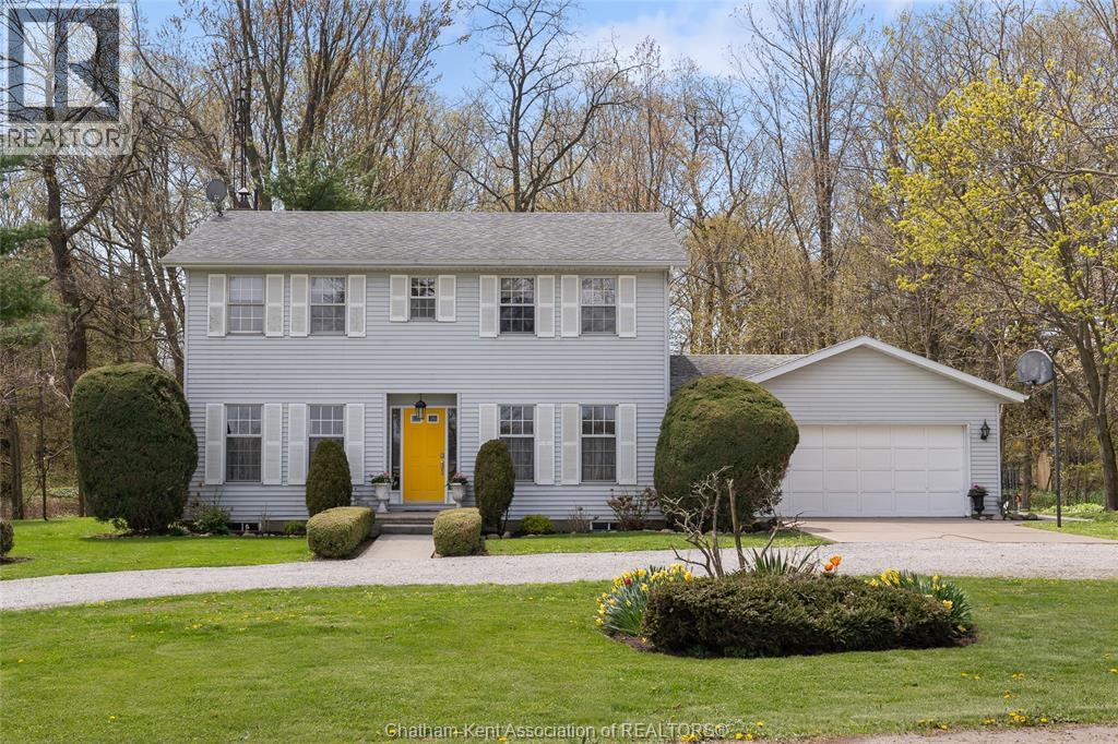 Welcome to 19196 Douglas Road — a beautiful 2-storey colonial-style home nestled in the peaceful and sought-after Sleepy Hollow community, just minutes from Lake Erie and downtown Blenheim. This lovingly maintained property sits on a lush, tree-lined 1-acre lot and offers 4 spacious bedrooms, 2.5 bathrooms including a private ensuite with laundry, and a bright 4-season sunroom overlooking a backyard filled with nature. The updated kitchen features granite countertops, a large island, and flows seamlessly into the cozy living room with a wood-burning fireplace. Enjoy a formal dining area, oversized front family room, and a convenient 2-piece bathroom just off the attached double garage. The partially finished basement offers flex space perfect for a rec room, home gym, or studio. With geothermal heating, mature landscaping, and charming curb appeal, this property blends rural tranquility with comfort and style. A rare gem in one of Blenheim’s best pockets! (id:4555)