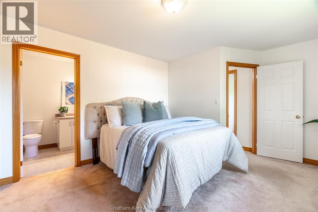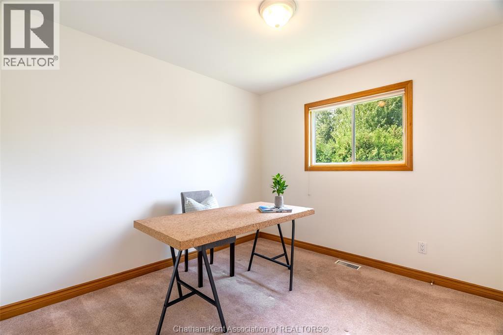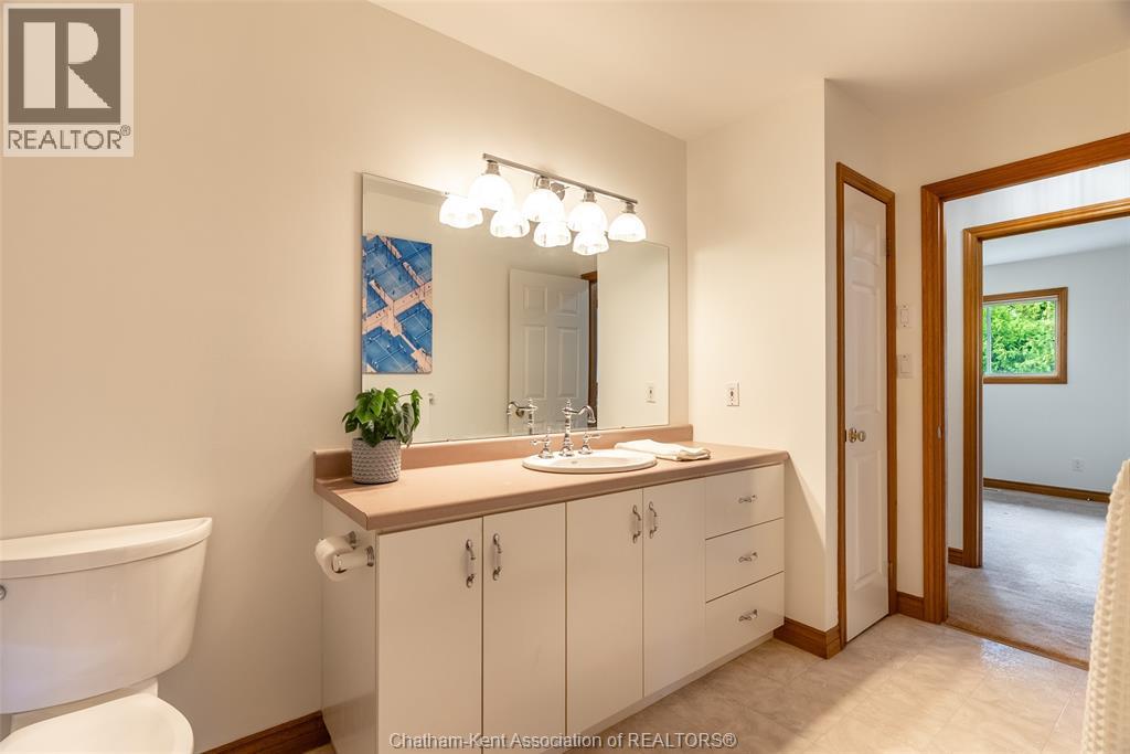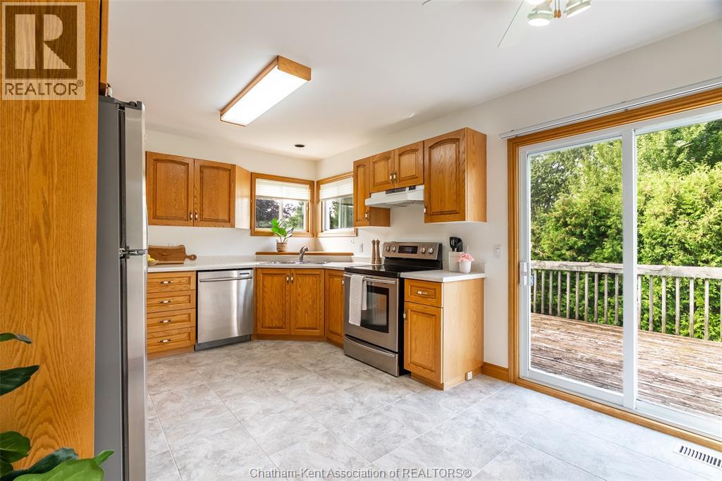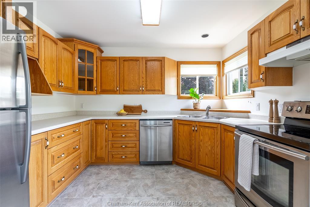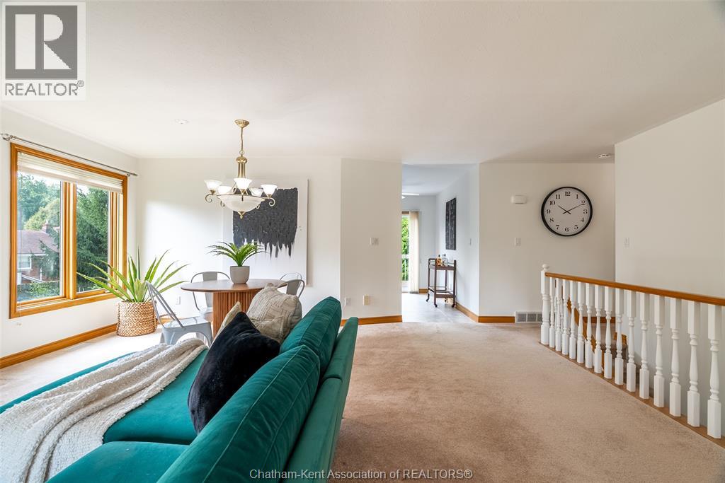 Tucked away on a peaceful court in one of Chatham’s most desirable neighbourhoods, this well-maintained stucco bi-level offers exceptional value and true pride of ownership. Perfectly located just minutes from parks, shopping, schools, and amenities, this home checks all the boxes for comfortable family living. Step inside to find a bright, welcoming layout with an abundance of natural light throughout. The main floor features a formal living room and dining room—perfect for hosting—plus a spacious eat-in kitchen with views to the backyard, ideal for family meals and everyday living. Three bedrooms are located on the main level, including a generous primary bedroom with direct access to a cheater ensuite bath. Downstairs, the finished lower level offers even more living space with a cozy rec room complete with a gas fireplace—perfect for relaxing evenings at home. A dedicated office or optional fourth bedroom, an additional 3-piece bath, and generous storage areas add versatility and function to the space. Whether you’re a growing family, first-time buyer, or downsizer looking for a quiet location without sacrificing convenience, this home is a must-see. Don’t miss your chance to #lovewhereyoulive in a prime Chatham location today! (id:4555)
