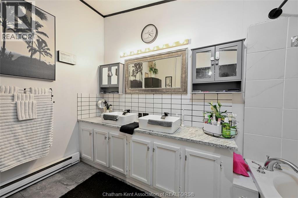 Welcome to 29338 Jane Street, Unit 72, just minutes outside the quiet community of Thamesville—where affordability meets comfort and space! This immaculate double-wide mobile home is packed with charm and functionality, offering an impressive 3 spacious bedrooms and 2 full bathrooms, including a private ensuite in the primary bedroom. Step inside to soaring vaulted ceilings and an open, airy feel. The home has been beautifully updated with fresh paint, newer flooring, modern countertops, and more—making it completely move-in ready. The large living area includes one of two propane fireplaces, creating a cozy ambiance all year long. Looking for bonus space? This home delivers with a fantastic rec room, a bar area for entertaining, and a bright and cheerful sunroom for relaxing with your morning coffee. From there, enjoy access to both a front porch and a private rear deck, perfect for soaking in the quiet surroundings and evening sunsets. An attached single-car garage provides secure parking and extra storage—rare for this style of home! Whether you're downsizing, starting fresh, or just looking for an affordable housing option with room to breathe, this home truly has it all. Located in a well-maintained, peaceful park just outside of town, you're only a short drive to amenities, shops, and commuting routes. Enjoy the low-maintenance lifestyle of park living without sacrificing square footage or style. Don't miss your chance to own one of the most spacious and updated homes in this community—Unit 72 is a must-see! (id:4555)
