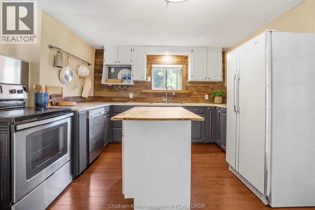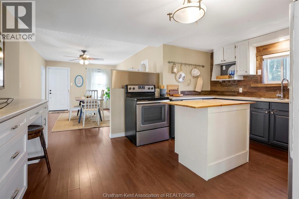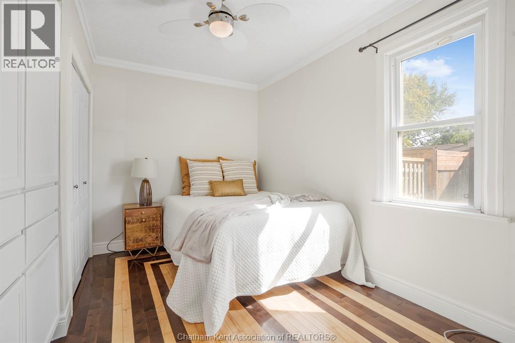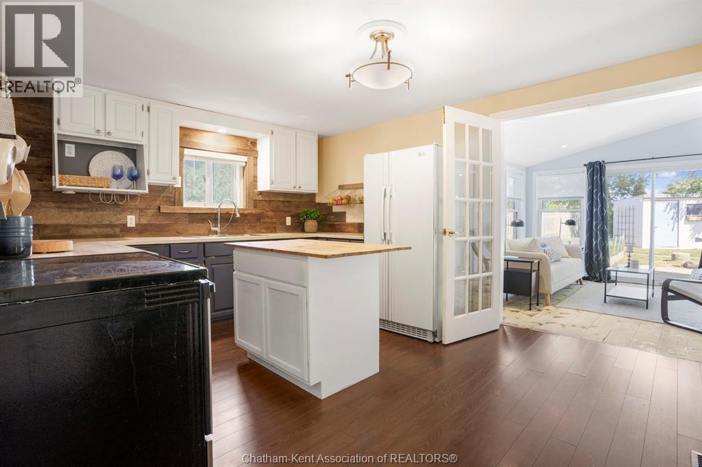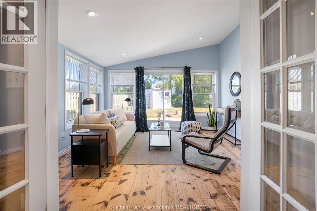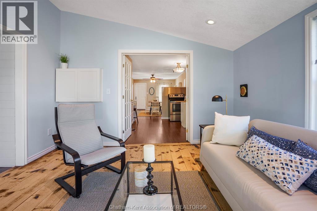 Welcome to this charming 2 bedroom, 1 bathroom bungalow on Chatham’s desirable south side. Designed for the ease of one-level living, the home offers a smart layout with built-in storage and plenty of closets. The open-concept kitchen and living area is highlighted by a cathedral ceiling in the living room, pot lights, and a functional island. French doors provide separation between the kitchen and living room while maintaining a bright, connected feel. Step outside to enjoy the fenced rear yard with deck and storage shed, perfect for relaxing or entertaining. Additional features include main floor laundry and a large driveway with ample parking. This well-kept home is move-in ready, offering comfortable and convenient living for first-time buyers, downsizers, or anyone looking for a manageable space in a great location. (id:4555)