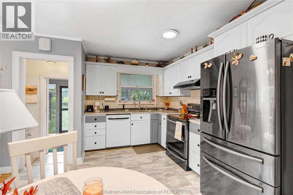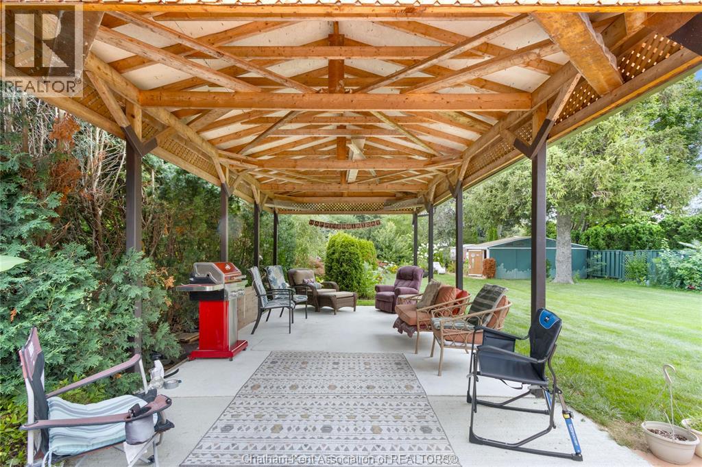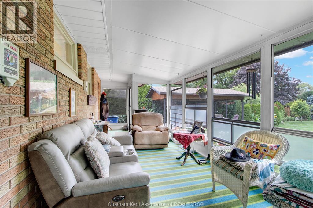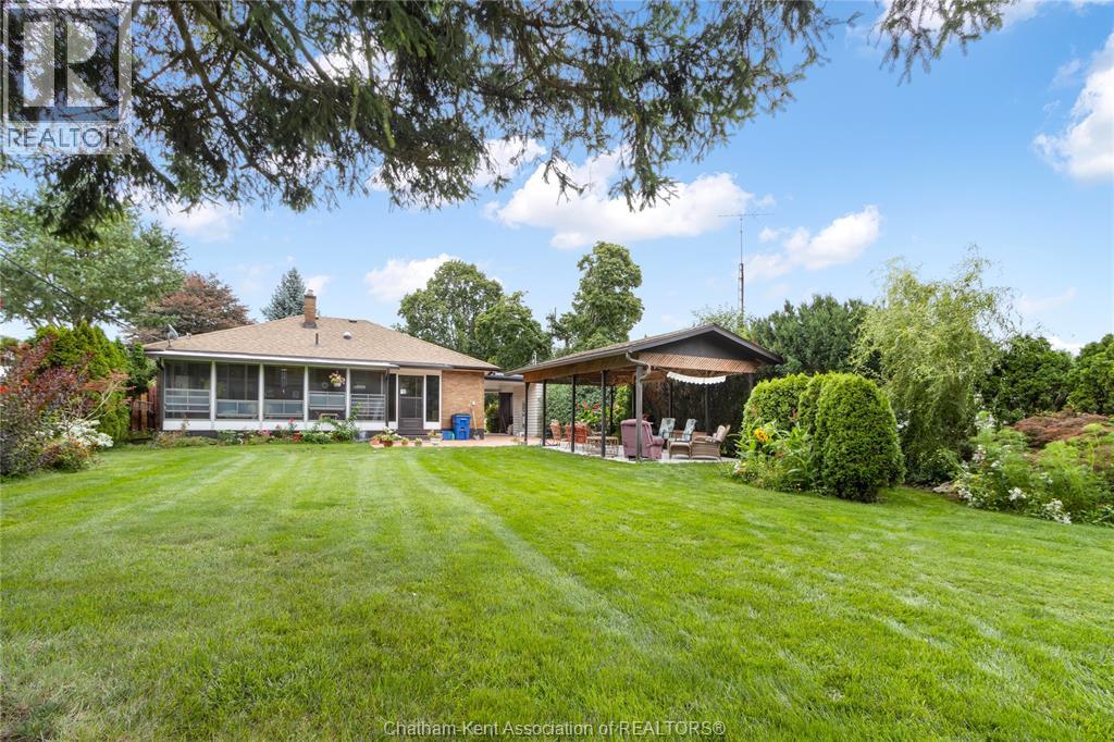Welcome to this charming bungalow on Chatham’s desirable north side, ideally located on a quiet dead-end street just minutes from schools, shopping, and everyday conveniences. Offering 2 bedrooms and 2 full baths, this home stands out with its inviting curb appeal, thoughtful updates, and a backyard setting that feels more like a private retreat than a city lot. Inside, you’ll find hardwood floors throughout the main living areas and a gas fireplace that adds both warmth and character to the living room. The bathroom has been updated with tasteful finishes, blending nicely with the home’s timeless style. The basement extends the living space with a large rec room, a built-in sauna, plenty of storage, and lots of room to tailor the space to your needs, whether that’s a home gym, hobby area, or just a comfortable spot to unwind. Step outside and you’ll find a meticulously landscaped yard designed for both function and leisure. A large workshop provides plenty of space for hobbies or storage, while a concrete pad with a covered gazebo creates the perfect spot for summer gatherings. The oversized sunroom extends your living space, blending indoor comfort with views of the beautiful backyard. This property is the perfect blend of location, comfort, and lifestyle, offering the convenience of city living with the feel of a private retreat. Call today! (id:4555)