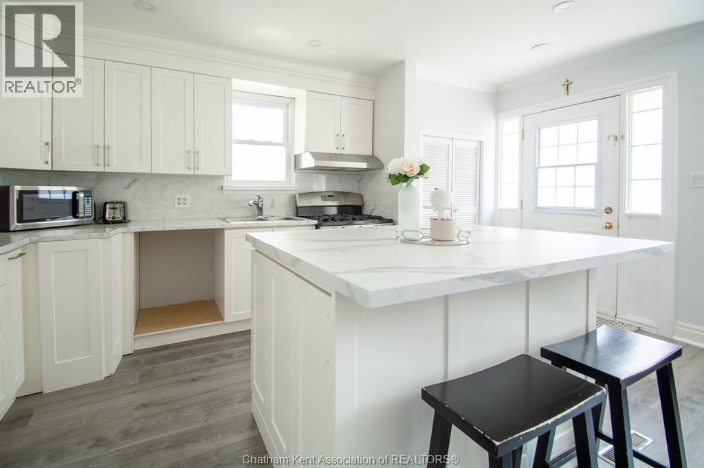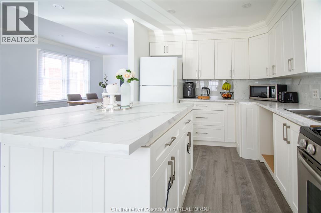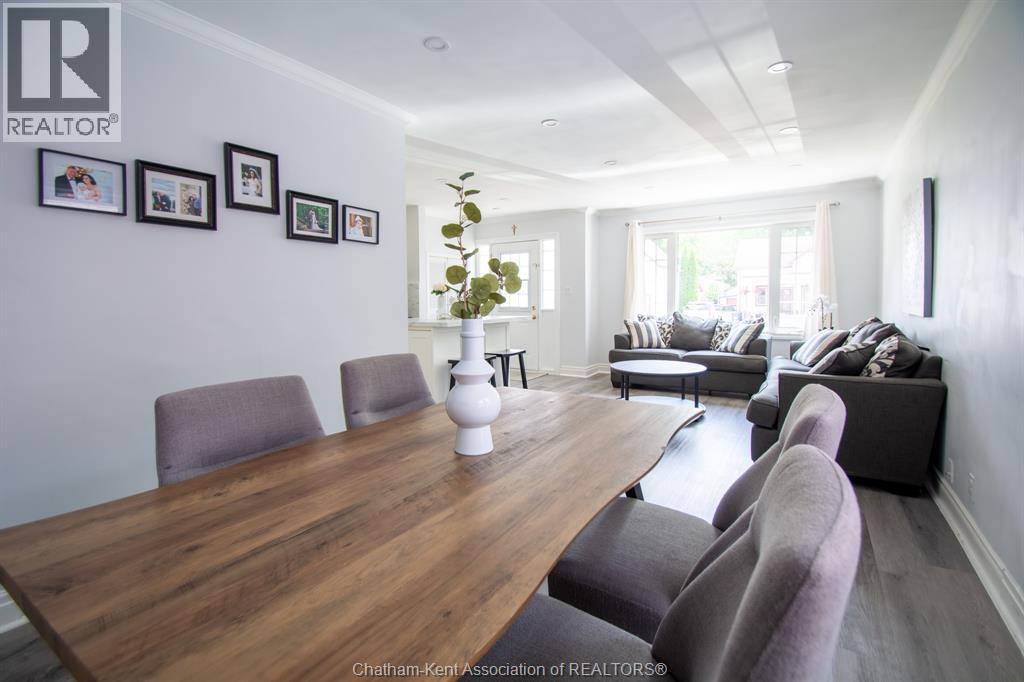Experience the warmth and style of this beautifully updated brick bungalow, ideally located on Chatham’s desirable north side. Offering 2+2 bedrooms and 2 full baths, this home is a perfect blend of comfort and functionality.The main floor features a bright, open-concept layout designed for modern living. The crisp white kitchen offers generous cabinetry and a central island, seamlessly connecting to the dining and living areas—ideal for both everyday living and entertaining guests. Two well-sized bedrooms and a 4-piece stylish bath complete the upper level.Downstairs, the fully finished basement adds even more living space with its own side entrance, a spacious rec room, a convenient half bath, laundry and plenty of storage. Outside, enjoy a detached garage for parking or hobbies, and a fully fenced backyard with a large patio—perfect for relaxing or hosting summer get-togethers. Close to schools, parks, and all essential amenities, this home offers both charm and convenience. Book your private tour today! Please allow minimum 5 hours to show. (id:4555)