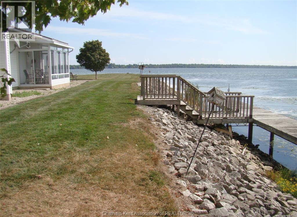 THIS GORGEOUS 3.5 ACRE WATERFRONT PROPERTY IS TRULY A RARE FIND. LOCATED ON THE NORTH SHORE OF BEAUTIFUL RONDEAU BAY WHICH OPENS TO THE VAST WATERS OF LAKE ERIE, JUST MINUTES FROM RONDEAU PARK AND SITUATED ON THE EDGE OF THE RESORT COMMUNITY OF RONDEAU BAY ESTATES. THIS PRIME PROPERTY BOASTS A SECLUDED SETTING, SPECTACULAR PANORAMIC VIEWS OF RONDEAU BAY AND LAKE ERIE, PRIVATE ACCESS TO OVER 270' OF WATER FRONTAGE, A PRIVATE DOCK WITH DEEDED WATER RIGHTS, PLUS A STEEL-FRAME (40' X 84') SHED WITH NATURAL GAS HEATED WORKSHOP. THE CONTEMPORARY STYLE, 1600 SQ. FT HOME FEATURES AN OPEN-CONCEPT FLOOR PLAN OF KITCHEN/DINING/LIVINGROOM - BRIGHT AND AIRY WITH VIEWS OF THE WATER FROM ALMOST EVERY DIRECTION, 3 BEDROOMS, 2.5 BATHS, GLASSED SUNROOM & ATTACHED DOUBLE GARAGE. THE BACKYARD, COMPLETE WITH SUNDECK, OFFERS AN AMAZINGLY LONG SETBACK FROM THE WATER'S EDGE WITH LOTS OF ROOM FOR ALL YOUR RECREATIONAL ACTIVITIES. UNIQUELY ZONED AG1, THE POTENTIAL OF EXTRA USES OF THIS PROPERTY COULD DEFINITELY BE AN ADDED BONUS. PROPERTY SERVICES INCLUDE NATURAL GAS, HYDRO, MUNICIPAL WATER, SEPTIC SYSTEM, GARBAGE PICK-UP, ACCESS TO FIBRE-OPTIC INTERNET, ASSOCIATION MEMBERSHIP ACCESS TO PARK, MINI GOLF COURSE, COMMUNITY MARINA & BOAT LAUNCH. THIS PROPERTY'S ATTRACTION IS SECOND TO NONE - FOR LEISURE, FISHING, BOATING, KAYAKING, BIRD WATCHING, PEACEFUL RELAXATION AND SO MUCH MORE. (id:4555)