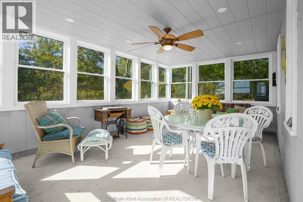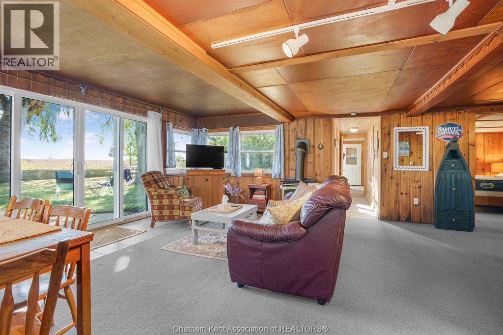 Relax & unwind at this inviting 3-bedroom, 1-bath lakefront cottage on the beautiful shores of Lake Erie. Inside, you’ll find bright, open-concept living with cozy propane fireplace and spectacular views from nearly every window. Thoughtfully updated since 2020, the cottage features a 200-amp electrical service, steel roof, new soffit, fascia, eavestroughs, siding, and trim and more, plus a rebuilt sunroom with solid 2x6 construction. Well insulated with spray foam & blown-in insulation for comfort through the seasons. A 16’ x 10’ outbuilding with a rooftop deck offers amazing views — a great spot for morning coffee or sunset watching. Appliances and furnishings included - so move right in & start enjoying lake life! Located inside Rondeau Provincial Park, you’ll have access to sandy beaches, great fishing and water sports on Rondeau Bay, miles of hiking trails, and incredible birding in the surrounding Carolinian forest. Current land lease in place until December 31, 2038. *Tax amount includes the lease cost* (id:4555)