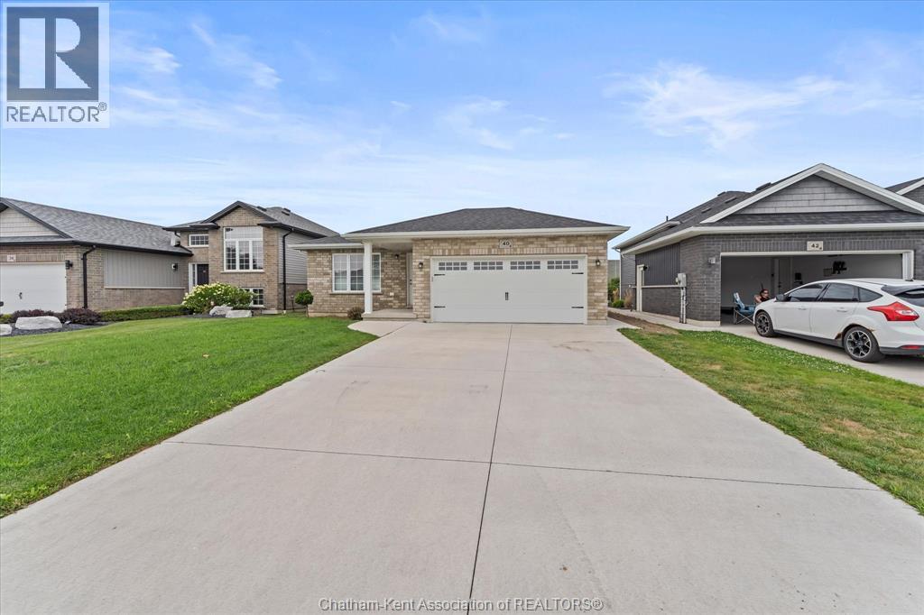 Welcome to 40 Regal Dr. in charming Tilbury! This beautifully maintained 3-bed, 2-bath back split offers the perfect blend of style and function. Built in 2019, it features a bright open-concept layout, beautiful flooring throughout, and a spacious kitchen with modern appliances. Enjoy cozy evenings in the finished basement with suite potential. Additional highlights include a double garage with inside entry, central AC, HRV system, and a yard ideal for kids or pets. Located on a quiet cul-de-sac near parks, schools and shopping. (id:4555)