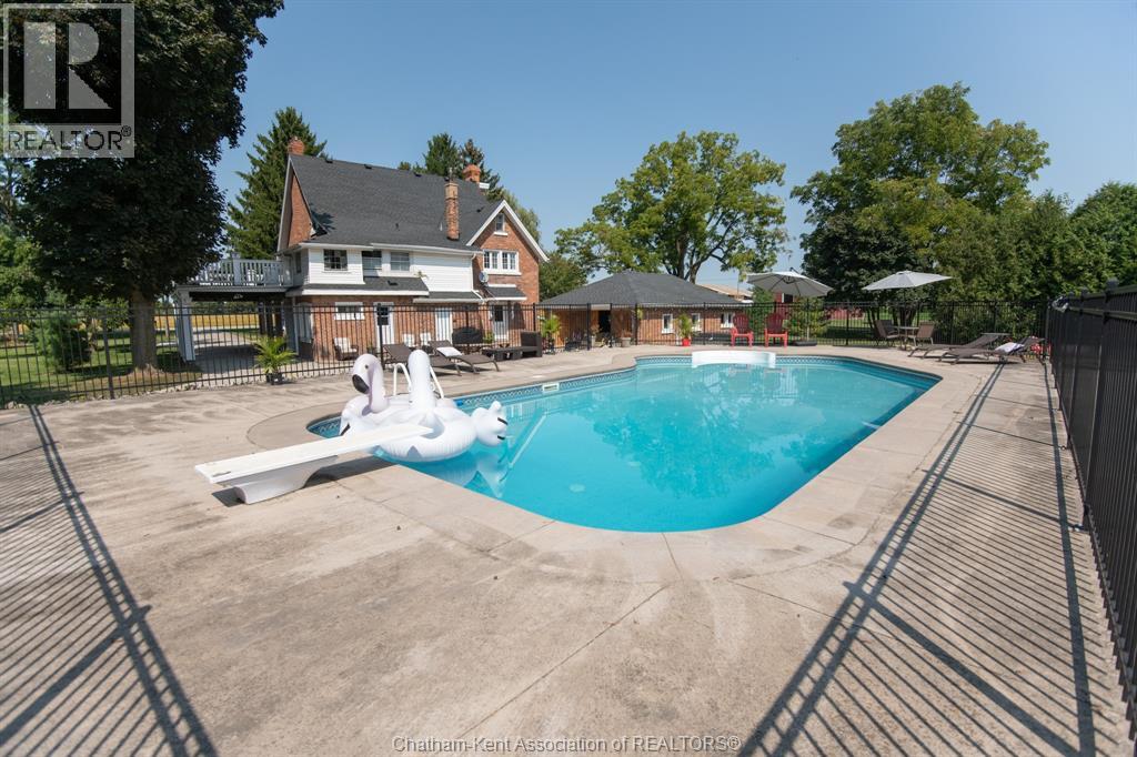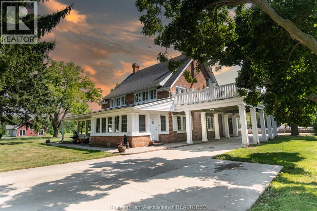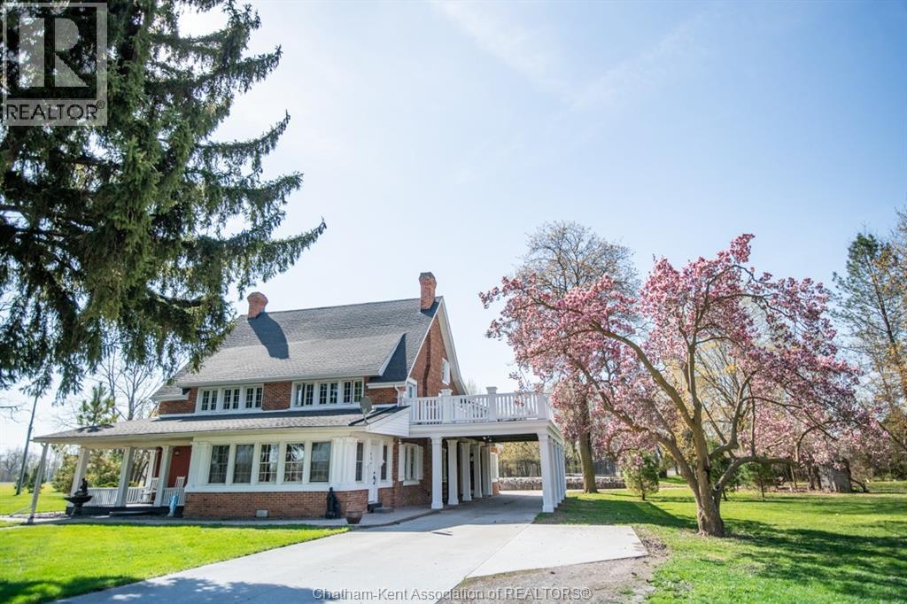 Step into timeless elegance with this rare 16-acre property set along the scenic Thames River. Built in 1861, this plantation-style residence showcases unmistakable southern charm while offering modern conveniences for today’s lifestyle. Spanning 2.5 stories, it features 5 bedrooms and 2 bathrooms. The spacious eat-in kitchen is a true showpiece with granite countertops, a large island, and plenty of room for family gatherings. The inviting living room is centered around a cozy gas fireplace—perfect for relaxed evenings. Upstairs, the primary bedroom includes a private balcony overlooking the lush property, an ideal spot to enjoy your morning coffee. Outside, the grounds are just as impressive. Enjoy a heated inground pool (installed in 2015), a soothing hot tub, and picturesque walking trails that wind through nature and lead right to the river’s edge. A 64'x48' heated shop, built in 2016, provides abundant space for hobbies, storage, or large equipment, ideal for entrepreneurs or hobby farmers. There’s also a separate studio or office with its own private entrance, perfect for a home business, guest suite, or creative workspace. The property includes 11 acres of workable land, offering potential for rental income, hobby farming, or conversion back to pasture for livestock. Over the years, this home has seen numerous thoughtful updates, blending historic architecture with functional modern living. Located between Chatham and London, and just a quick 10-minute drive to Hwy 401, this exceptional property offers the best of both worlds: peaceful country living with easy access to major routes. Whether you’re dreaming of a family retreat, a hobby farm, or a place to run your business from home, this property is truly one of a kind. (id:4555)