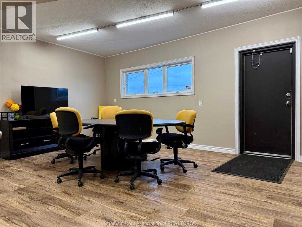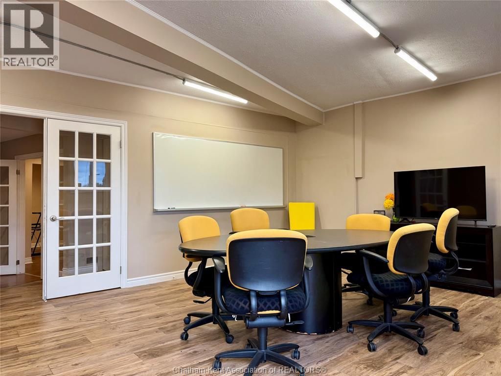 Prime High-Visibility Corner – Approx. 2,300 Sq. Ft. Exceptional opportunity to lease a bright, modern professional space on one of Chatham’s busiest and most visible corners—ideal for real estate, financial, legal, health, or other professional services. This prime location offers excellent exposure and long-term growth potential, situated within the area slated for Chatham’s future downtown revitalization and development plans. Expansive street-front windows offer unmatched visibility and valuable advertising potential through vinyl signage—an affordable and effective way to increase brand awareness. Inside, the space showcases newer flooring, modern LED lighting, and updated doors, hardware, and fixtures throughout. The well-designed layout includes two private offices (one with an ensuite washroom), a 12' x 19' common room with double doors, a boardroom meeting room with French doors and direct street access, a spacious open reception/waiting area, and a staff lunchroom equipped with sink, fridge, and microwave. Additional highlights include an assumable Security One alarm system, programmable exterior accent lighting for maximum exposure. Enjoy the convenience of an all-inclusive lease, covering water, hydro, heat, A/C, lighting, hot water tank, and furnace/A/C maintenance—making budgeting simple and predictable. Property taxes and fire insurance are paid by the landlord. (id:4555)