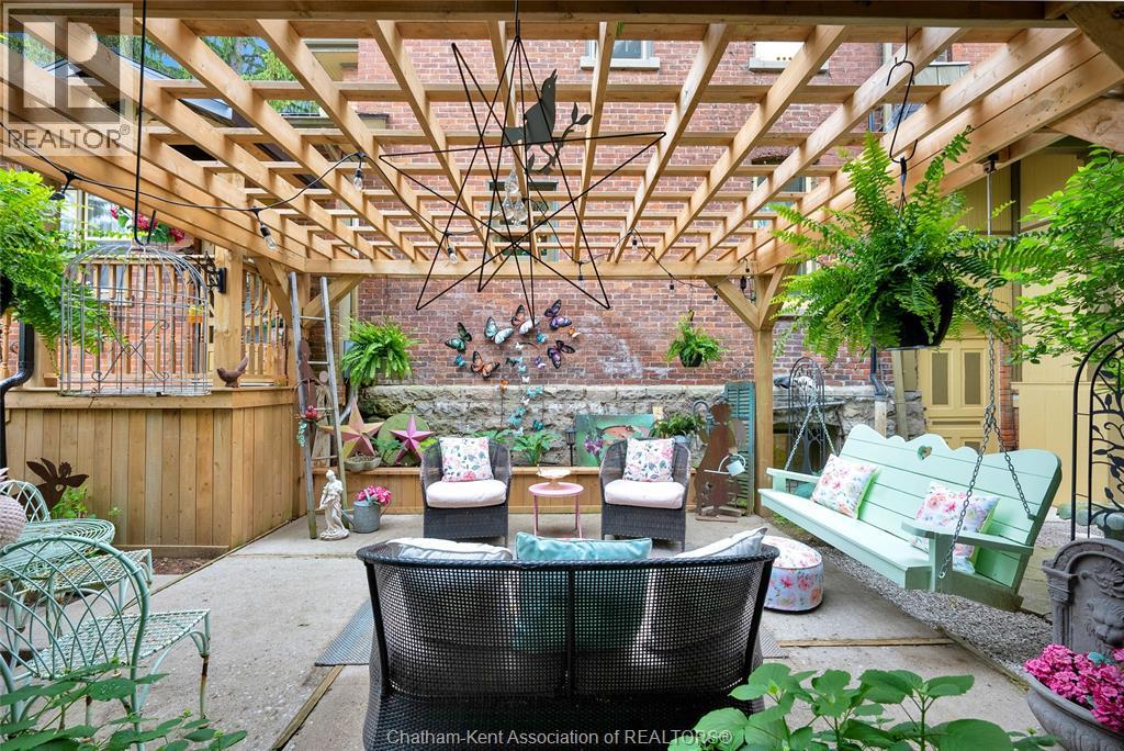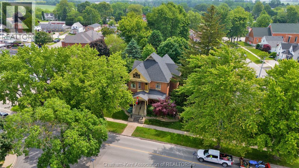 This iconic Victorian-style home stands proudly in the heart of Dresden, offering a rare blend of character, meticulous craftsmanship, charm, and is being offered for the first time in over 60 years. From the moment you arrive, you'll be captivated by the beautifully landscaped walkways, intricate woodwork, rich trim details, pocket doors, and the impressive scale of the home—truly unlike anything else on the market. Lovingly maintained and thoughtfully updated over the years, the home preserves its original charm while offering plenty of improvements. The main floor offers a large kitchen with ample cabinetry, joining a large dining room, providing a great space for entertaining. Two sitting rooms for potential office/dens and a 2pc bath complete the main floor. Upstairs, you’ll find 4 spacious bedrooms, including a generous primary suite complete with a large ensuite. Wide hallways and transom windows enhance the sense of space and elegance, with access to a balcony overlooking North Street. The third-floor attic presents even more potential—ideal for a home office, creative studio, or cozy retreat. Meanwhile, the fully finished basement includes a separate entrance, a large family room, additional bedroom, kitchenette, and an updated 3pc bathroom—perfect for multi generational living, guests or potential rental income. Step outside into a storybook setting: private and peaceful grounds featuring a pergola, winding garden paths, serene sitting areas, and a one-of-a-kind she shed complete with hydro—perfect for hobbies, relaxation, or creative pursuits. A concrete drive leads to the detached double-car garage, rounding out this extraordinary property. Property to be sold in ""as-is"" condition as per request of the estate. (id:4555)