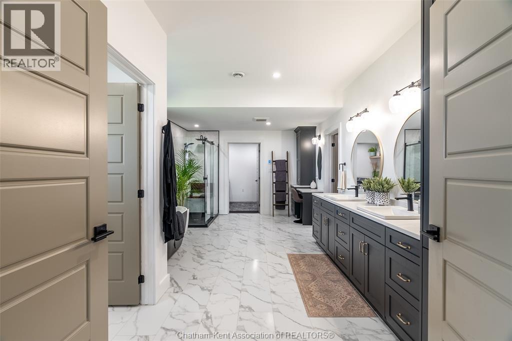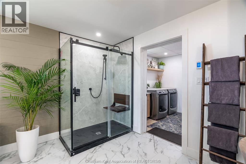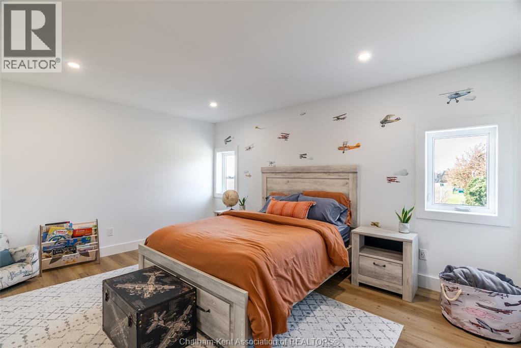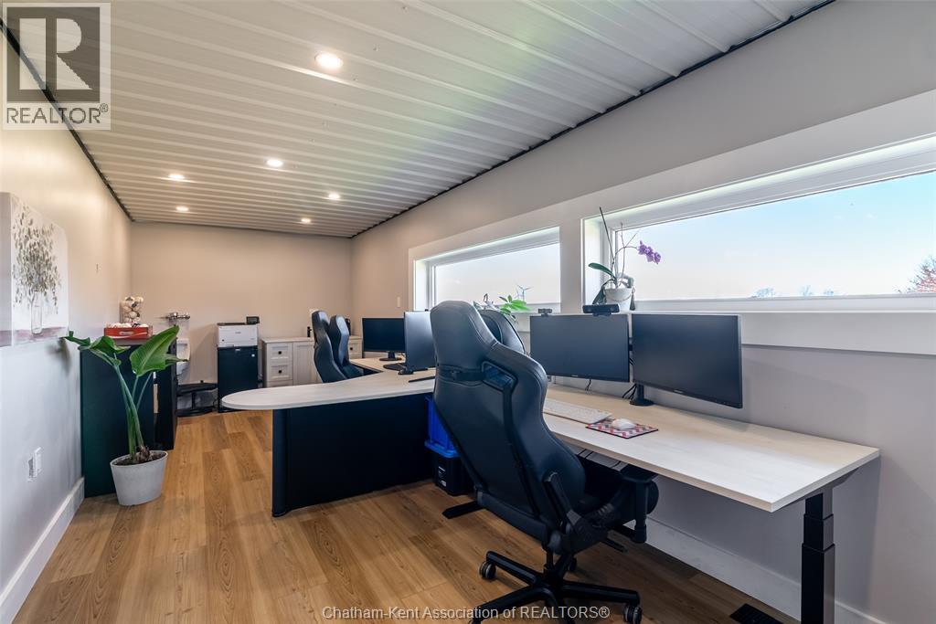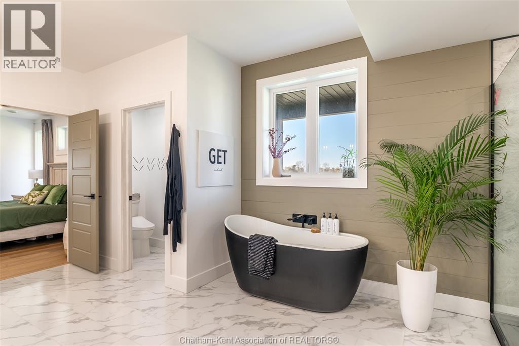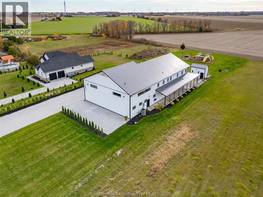 Welcome to this stunning 2-year-young barndominium, perfectly blending modern living and country charm. Sitting on just under an acre in the quaint town of Merlin, this 5-bedroom, 4-bath home offers space, function, and style at every turn. The main floor features soaring vaulted ceilings, an open-concept layout, with loads of natural light and a large kitchen with island, walk-in pantry, and smart appliances. The main floor primary suite is a true retreat with a soaker tub, separate glass shower, dual vanity, and large walk-in closet; with laundry conveniently located off this room, as well as access to the garage. Upstairs offers 4 generous bedrooms, two 4-piece baths (one Jack & Jill), and an additional family room for play or relaxation. The heated and cooled shop includes in-floor heat, a 5th bathroom, and even a urinal in the office; making it the ultimate manroom or workspace. Enjoy the freedom of country living with easy access to the 401, Chatham, Tilbury, and Windsor. A place where you can work, play, and live - all in one. Ask for list of uprgrades. #lovewhereyoulive (id:4555)