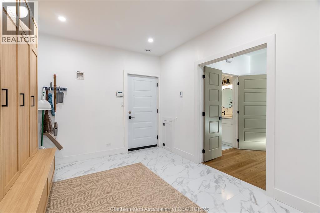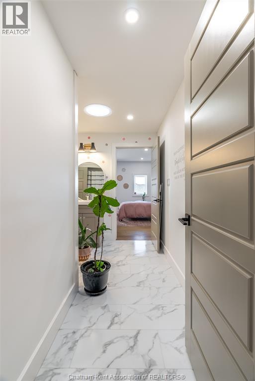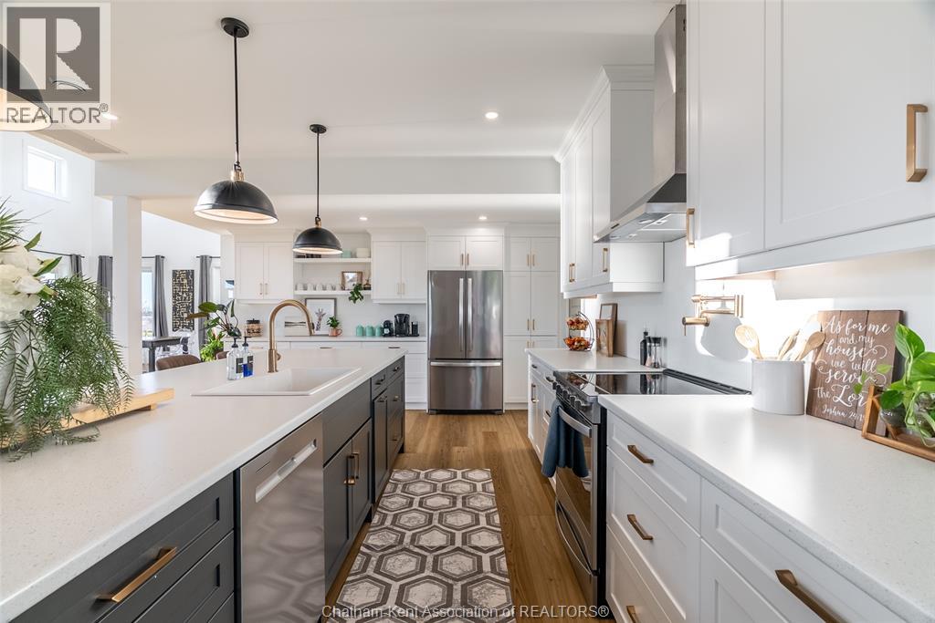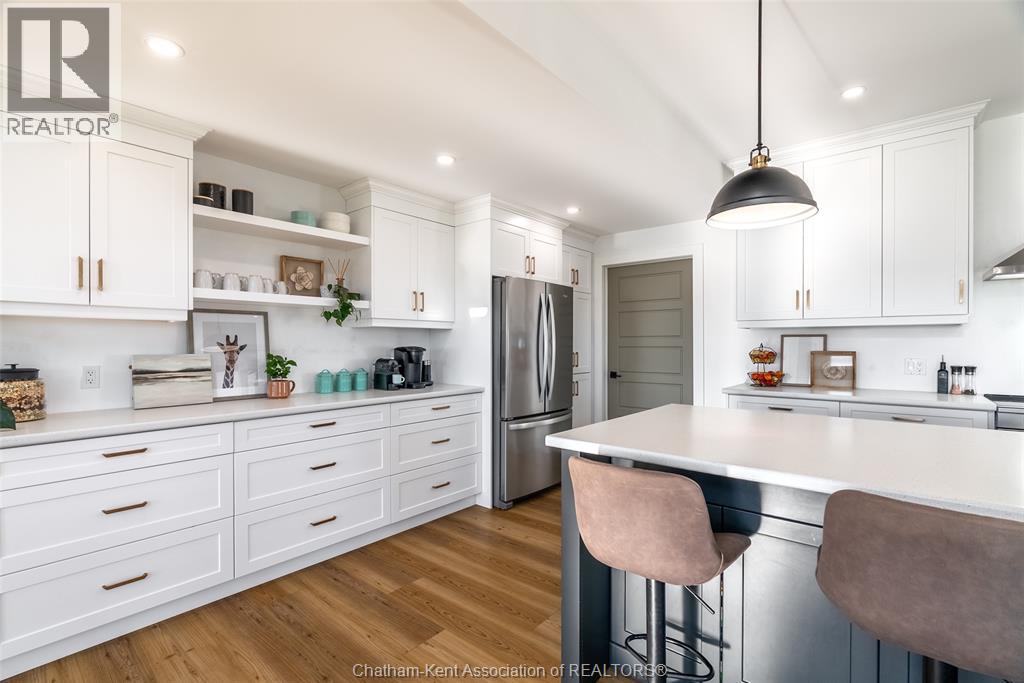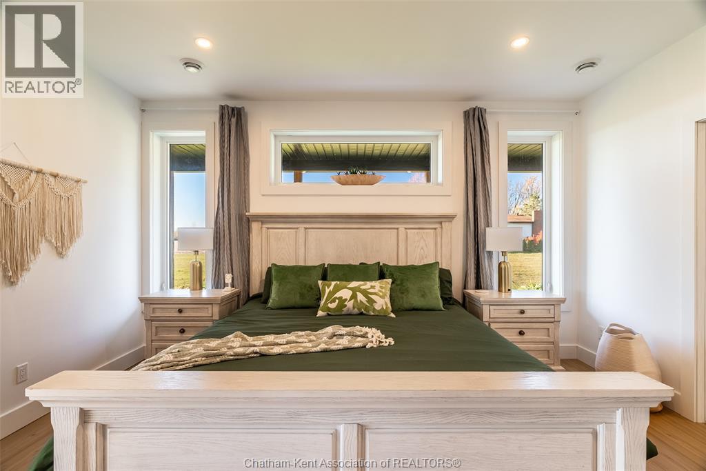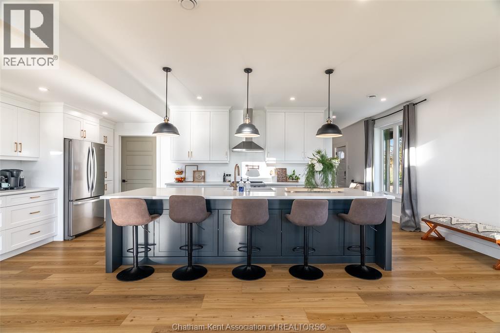 Welcome to this stunning 2-year-young barndominium, perfectly blending modern living and country charm. Sitting on just under an acre in the quaint town of Merlin, this 5-bedroom, 4-bath home offers space, function, and style at every turn. The main floor features soaring vaulted ceilings, an open-concept layout, with loads of natural light and a large kitchen with island, walk-in pantry, and smart appliances. The main floor primary suite is a true retreat with a soaker tub, separate glass shower, dual vanity, and large walk-in closet; with laundry conveniently located off this room, as well as access to the garage. Upstairs offers 4 generous bedrooms, two 4-piece baths (one Jack & Jill), and an additional family room for play or relaxation. The heated and cooled shop includes in-floor heat, a 5th bathroom, and even a urinal in the office; making it the ultimate manroom or workspace. Enjoy the freedom of country living with easy access to the 401, Chatham, Tilbury, and Windsor. A place where you can work, play, and live - all in one. Ask for list of uprgrades. #lovewhereyoulive (id:4555)