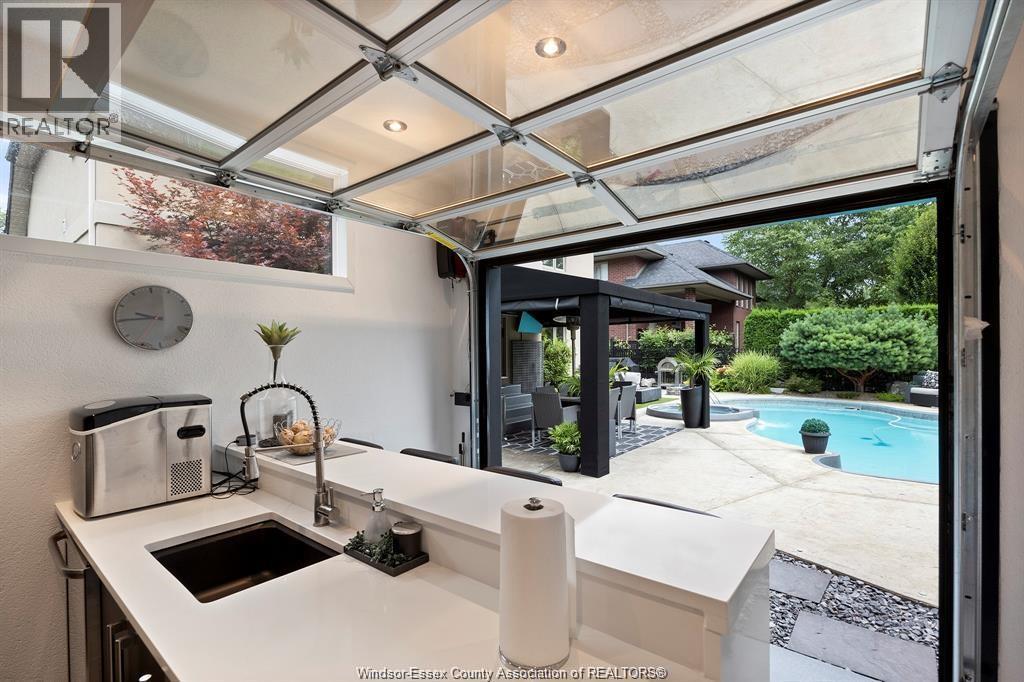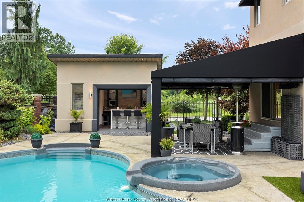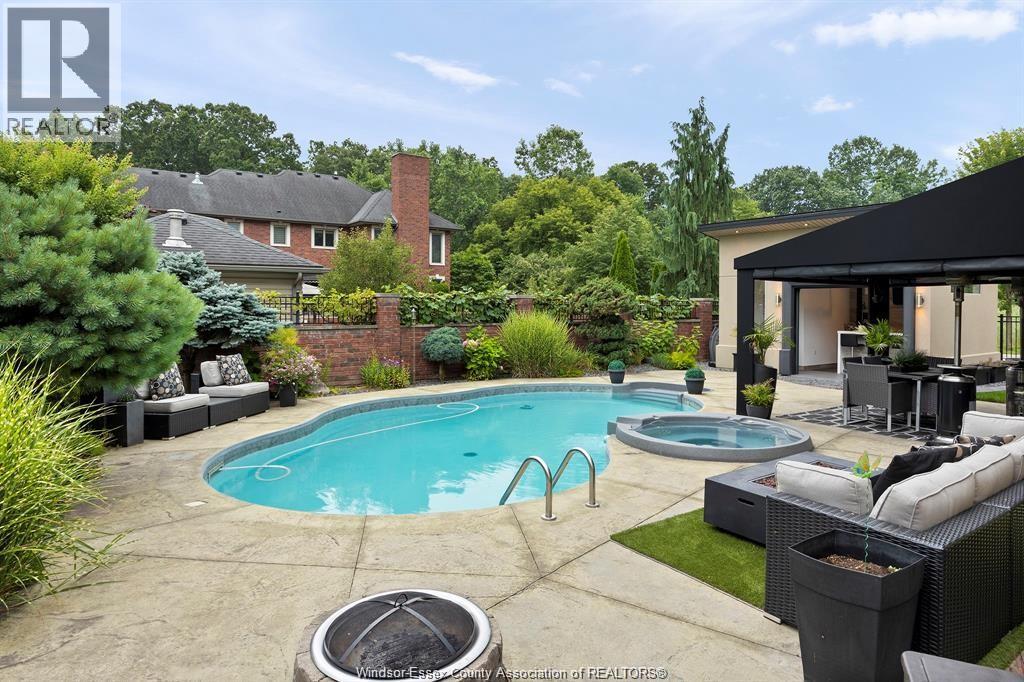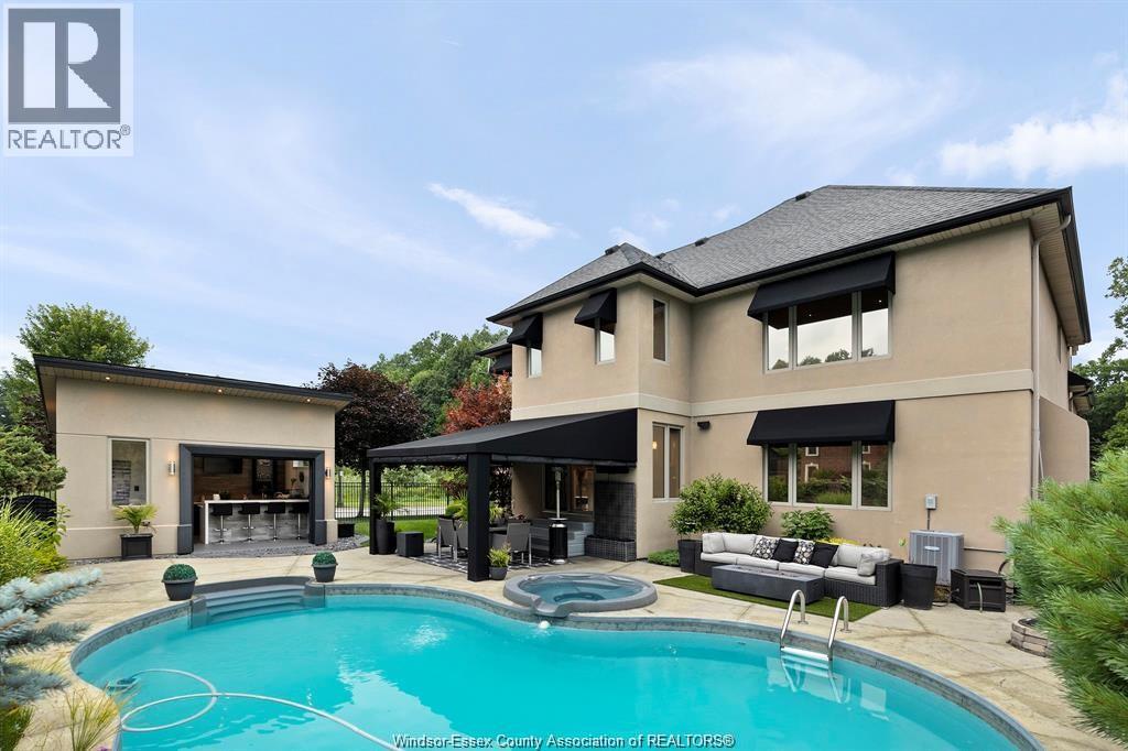 This Timberland-built custom home delivers refined luxury in one of LaSalle’s most sought-after neighbourhoods. Set on a quiet, family-friendly street, this 3+1 bedroom, 3.5 bath residence showcases exceptional craftsmanship with elegant formal living and dining rooms, an inviting eat-in kitchen, a dedicated main-floor office, and a dramatic two-storey great room highlighted by a striking feature fireplace. The main level also includes a convenient laundry/mudroom and detailed millwork throughout. Upstairs, the serene primary suite features a spa-like ensuite and an oversized walk-in closet, while two generous bedrooms are connected by a private Jack & Jill bath. The fully finished lower level adds versatility with a fourth bedroom, full bath, expansive rec room, and ample storage. Outside is an entertainer’s paradise: a covered patio overlooking a gorgeous inground sports pool and an impressive pool house complete with wet bar and lounge area. A rare opportunity to own a high-quality custom home in a premier LaSalle location. (id:4555)