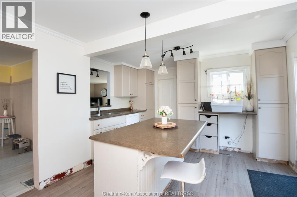 Affordable, family-friendly living in a great Dresden location! This charming 1½ storey, 3-bedroom home, sits on a generous lot and over 1500sqft of living space. This home offers the perfect blend of character, comfort, and outdoor enjoyment—ideal for first-time buyers or growing families. From the welcoming covered front porch to the spacious, fully fenced backyard with an above-ground pool, this property delivers plenty of room to relax, entertain, and make lasting memories. Step inside to a bright, open main floor featuring a modern kitchen with loads of cabinetry, a large island, and updated finishes. The kitchen flows seamlessly into the dining area and out to the backyard through patio doors, offering excellent natural light and easy indoor-outdoor living. The main floor also includes a full bathroom and convenient layout perfect for everyday life. Upstairs, you’ll find all three bedrooms along with laundry and a second bathroom currently under construction—giving you the opportunity to finish it exactly the way you want. The home’s thoughtful layout and functional spaces allow for a comfortable and practical lifestyle. Outside, the fully fenced backyard becomes your private oasis and enjoy the above-ground pool (new in 2021 with equipment), there’s plenty of space for the kids and pets to play. An attached garage provides extra room for storage, hobbies, or tinkering. Additional updates include metal roof on the house for long-lasting durability, updated forced air gas furnace and A/C (2021), and a new sump pump (2021). Located just a short walk to Dresden Area Central School, parks, and downtown amenities, this home offers convenience and community all in one place. A wonderful opportunity to get into the market and enjoy a home with room to grow and make your own personal touches. (id:4555)