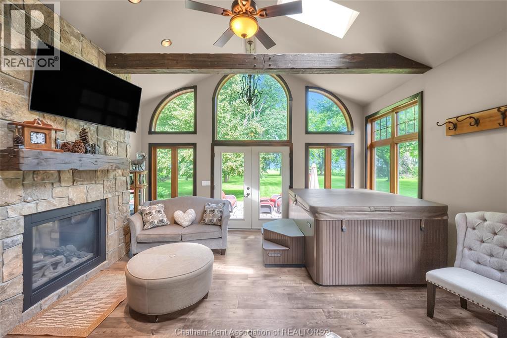 Welcome to your dream country home—just minutes from the city, but a world away from the hustle and bustle. Sitting on just over an acre of beautifully landscaped land, this 4-bedroom, 3 bathroom gem offers the perfect mix of space, comfort, and character. Originally built in 1998, with a large addition in 2015, there's room for the whole family to spread out and enjoy. Inside, you’ll find 4 large bedrooms, with 2 primary bedrooms—one with a private ensuite, and the other featuring a stunning double-sided gas fireplace that connects to a spacious great room with vaulted ceilings and a stunning stone fireplace. Just steps away, unwind in your private hot tub—the perfect way to relax after a long day. Whether you're hosting family get-togethers or just enjoying a cozy night in, this space was made for making memories. There have been many recent updates, including the roof, furnace, central air, and hot water heater (owned), so you can move in with confidence. Outside is a true retreat—professionally landscaped with towering trees, a park-like setting, and loads of privacy. Whether it’s family barbecues, quiet mornings with coffee, or evenings around the firepit, this backyard is ready for it all. All this just a short drive from the city—close enough for convenience, but far enough to enjoy the peace and quiet of country living. Come see for yourself—your country escape is waiting! (id:4555)