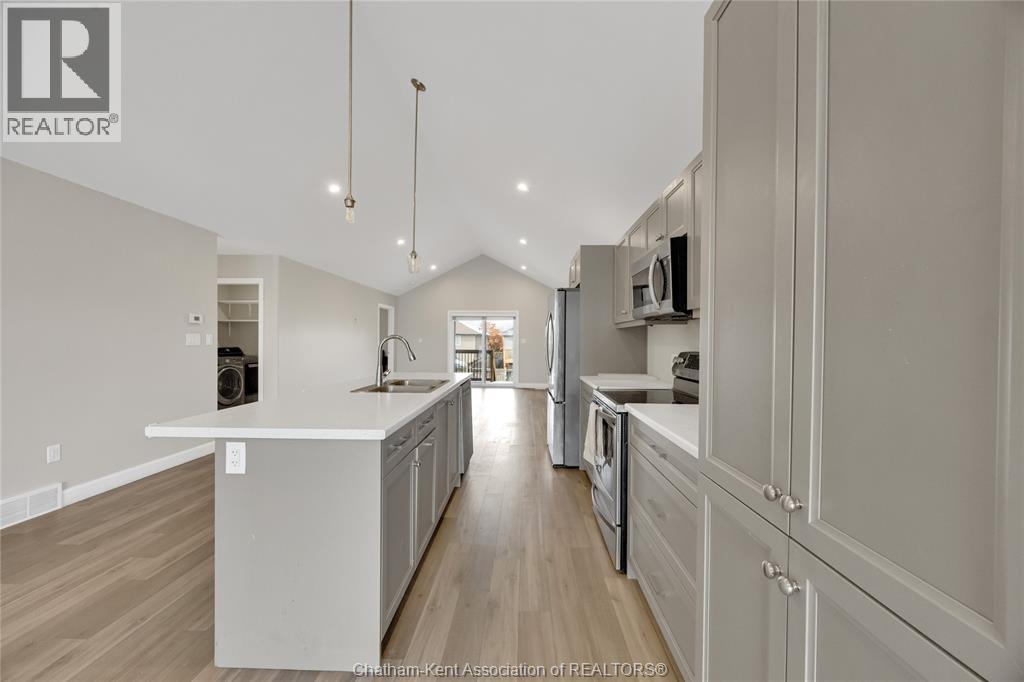 Welcome to this 1,535 sq. ft. raised ranch, built in 2022, thoughtfully designed with two fully self-contained living spaces—ideal for multi-generational living or added flexibility. The main level offers 2 bedrooms and 2 bathrooms, including a spacious primary bedroom with a walk-in closet and private ensuite. Enjoy bright, open-concept living through the living, dining, and kitchen areas. The centrally located kitchen features a large island perfect for everyday meals and entertaining, while a generous front window floods the space with natural light. This level also includes its own dedicated laundry. The lower level functions as a complete second living space, featuring 2 additional bedrooms and 2 bathrooms, including a second primary bedroom with its own ensuite and walk-in closet, as well as separate laundry—making it independent from the main floor. Additional highlights include a covered back porch, single-car garage, and a double-wide concrete driveway. The home also comes with the remaining balance of the 7-year Tarion new home warranty, offering added peace of mind. Situated in a newer, family-friendly neighbourhood just five minutes from Highway 401 and close to schools, shopping, and everyday amenities, this property combines comfort, convenience, and long-term value. A fantastic opportunity to own a newer home in a growing community with exceptional versatility. Book a showing today! (id:4555)
