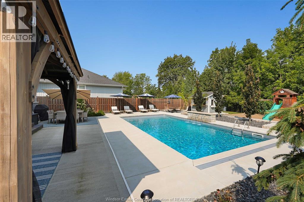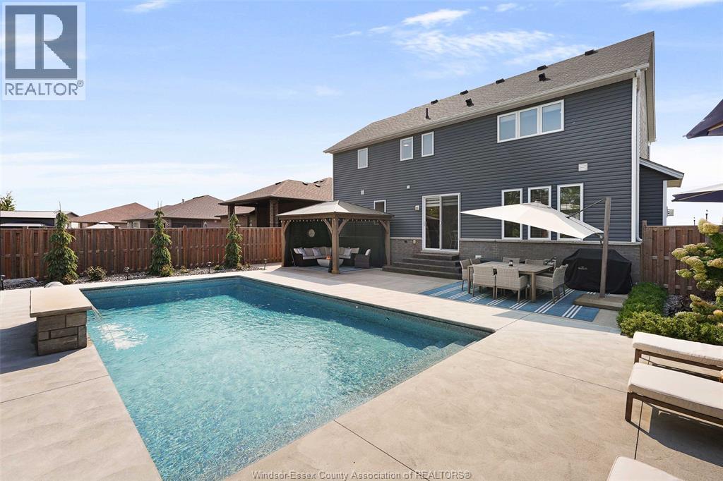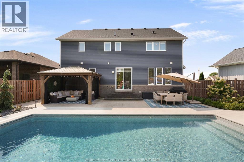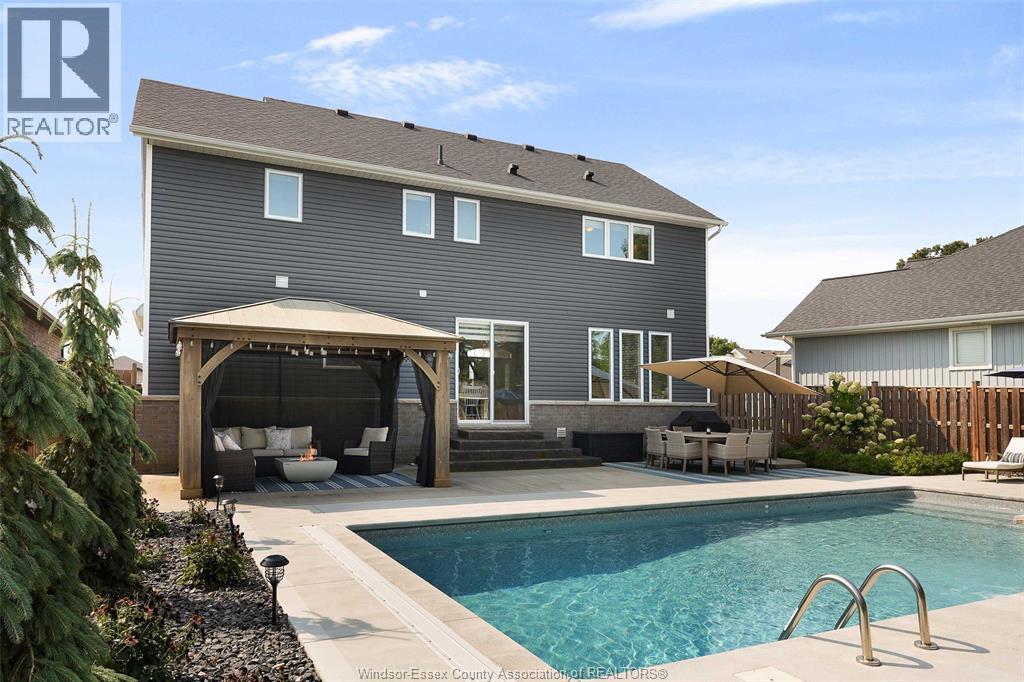 Welcome to this exceptional two-storey home in sought after area of Meadowview Estates. Built by BK Cornerstone, this home is thoughtfully designed for both elegance and everyday living. Main floor features a living room with gas fireplace, mudroom, 2 piece bath and a stunning custom kitchen with quartz countertops, ample cabinetry and a walk-in pantry. The primary suite offers a spa-like ensuite with soaker tub and tiled shower. With 5 spacious bedrooms (3 with walk-in closets), 3.5 bathrooms and a fully finished basement, there's room for the whole family. Step outside to your private backyard oasis with an inground heated saltwater pool with LED lighting, waterfall feature, Euroshed bar and playground - perfect for entertaining. Professionally landscaped with no rear neighbours for added privacy. A true must-see! (id:4555)