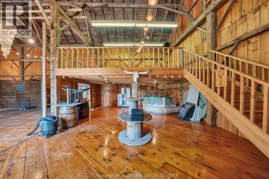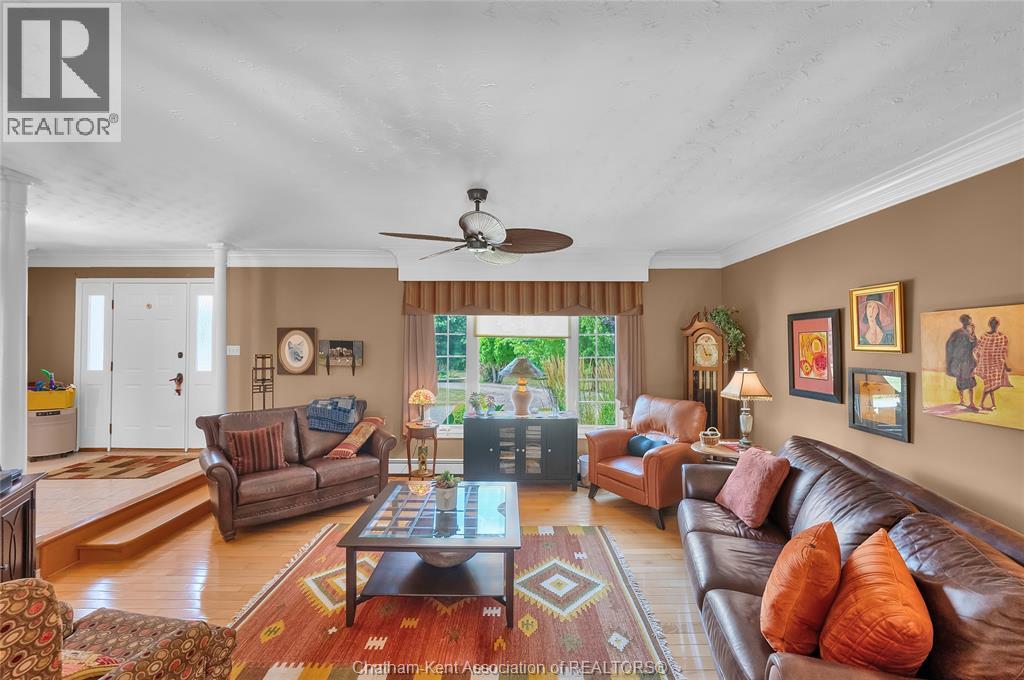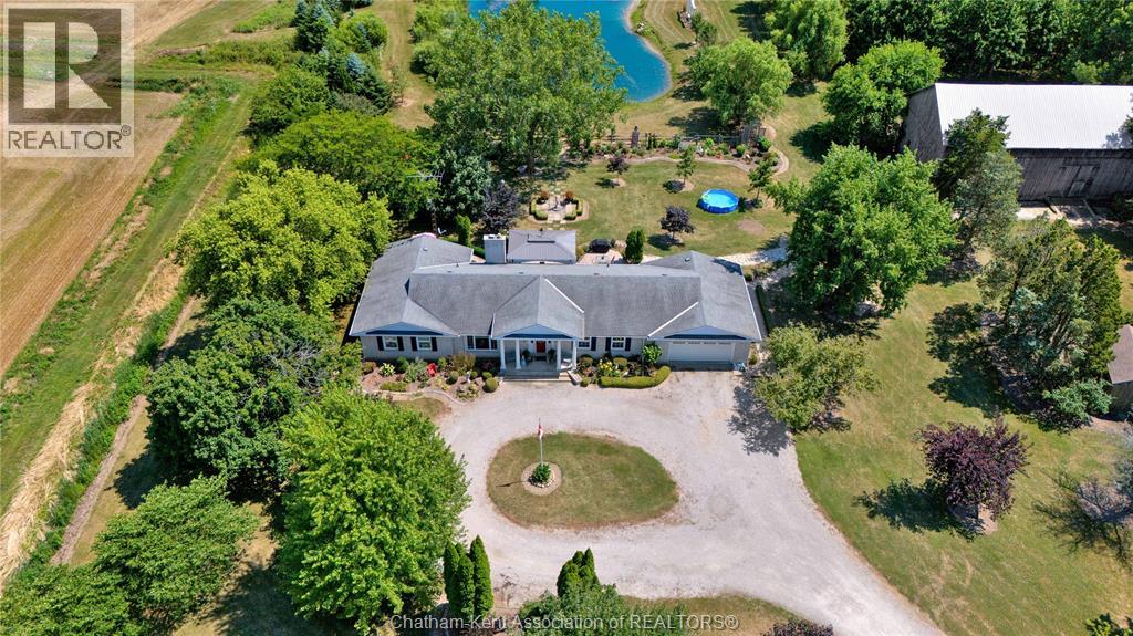 Experience the best of country living on 5.68 private acres. This stately bungalow combines comfort, functionality, and room to entertain. Designed with gathering in mind, the home features multiple living spaces, including a bright living room, a family room with gas fireplace, a formal dining room with built-ins and electric fireplace, and a spacious eat-in kitchen with abundant cabinetry and counter space. The main level offers three generous bedrooms, including a primary suite with garden doors opening to the backyard, and 2.5 bathrooms to accommodate the family. The finished lower level expands your living options with a large games room and recreation room. Outdoors, enjoy a covered patio, stroll around the tranquil pond, and take advantage of the 40x80 barn for private events, hobbies, or storage. Additional highlights include multiple outbuildings, a vegetable garden, and a naturalized treed area—ideal for exploring or relaxing. Practical updates add peace of mind: vinyl windows, a 2023 heat pump, 200-amp service, spray foam insulation, and no carpet throughout. With no close neighbours, this property offers the ultimate in privacy and a lifestyle where you can gather, grow, and unwind. (id:4555)