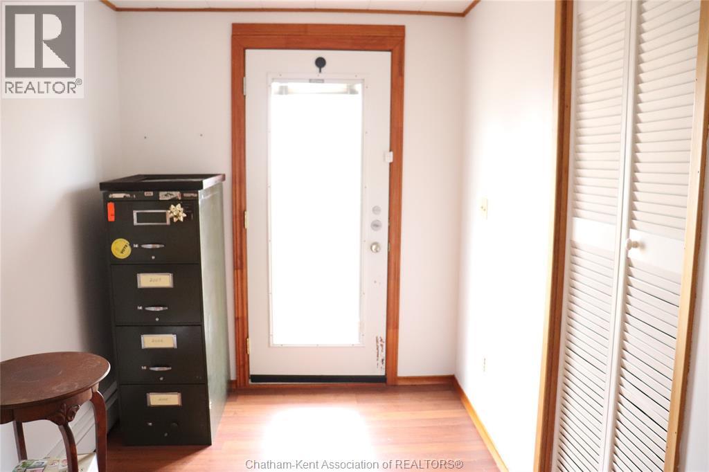 Welcome to this affordably priced starter or retirement home. Walking distance to uptown Blenheim. McGregor Park is across Talbot St. This home has a gas hot water boiler heating system and a heat pump to provide air conditioning. Interior is bright and has open space front entrance through living room area. There is one large bedroom and a den that could be a smaller bedroom if needed. Eat-in kitchen. Rear entrance mudroom is also the laundry area. There is an access to the unfinished basement space in the mudroom. Patio deck on rear that can attract many birds to enjoy your generosity. Just starting out or downsizing this home is affordable living. (id:4555)