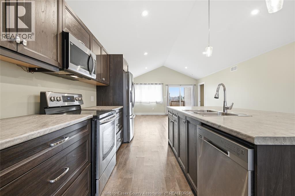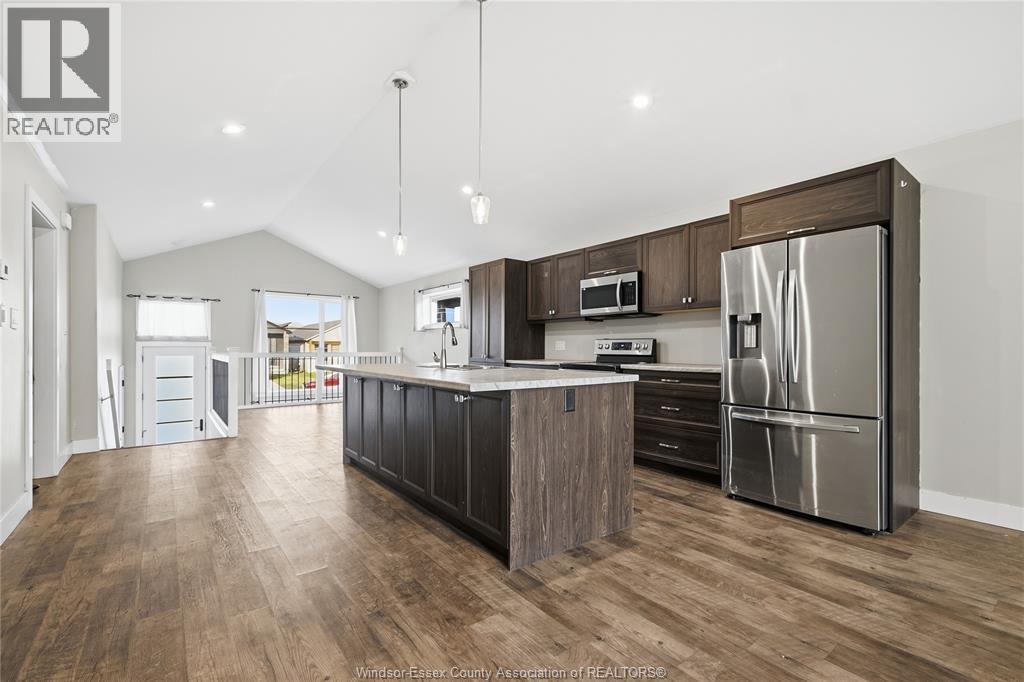 **Modern Raised Ranch Built in 2022** Welcome to this bright and thoughtfully designed bungalow offering open-concept living, with vaulted ceilings & premium layout, modern finishes, and excellent potential with an unfinished basement. **Open-Concept Main Level with Vaulted Ceilings** Enjoy a sunfilled living room with a large front window and seamless walk-out to a wooden deck with covered porch - perfect for relaxing or entertaining. The central kitchen features a large island, stainless steel appliances including fridge, stove, built-in microwave, and dishwasher, flowing into a spacious eat-in area with vaulted ceilings and vinyl flooring. The primary bedroom offers a walk-in closet and a private 3pc ensuite with a standing shower. Two additional bedrooms with closets and vinyl flooring are serviced by a 4pc main bathroom. Functional layout and natural light make this home ideal for comfortable everyday living.**Unfinished Lower Level- Endless Potential** The basement features high ceilings, large windows, and a utility room with tankless hot water heater, offering a great opportunity to create additional living space, recreation areas, or an in-law suite tailored to your needs.**Great Outdoor Space & Family- Friendly Setting** The property includes a double front driveway, single-car garage, and a backyard with covered porch and wooden deck - ideal for outdoor enjoyment. Located in a growing Chatham community, close to amenities, schools, and parks. A fantastic opportunity for buyers seeking modern bungalow living with room to grow.** (id:4555)