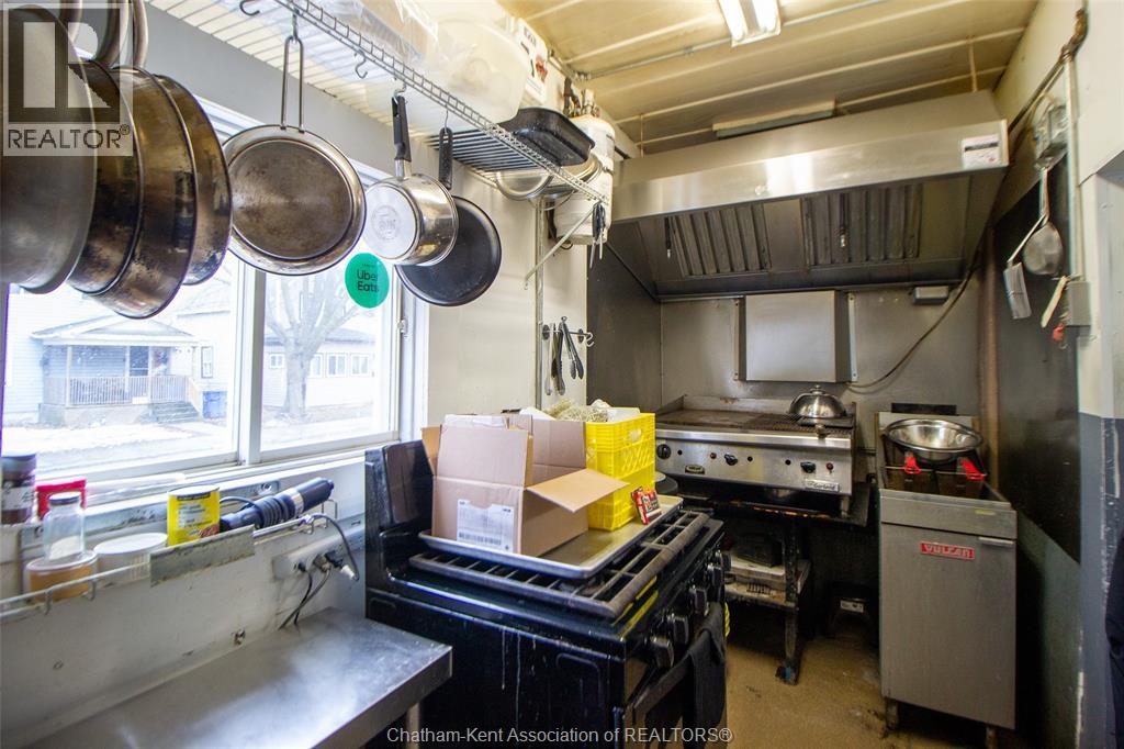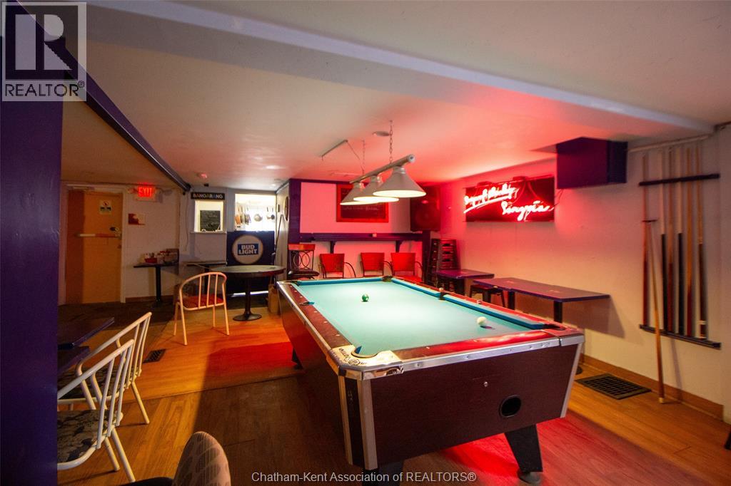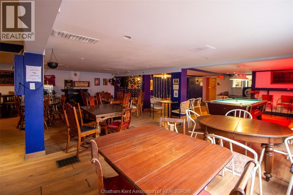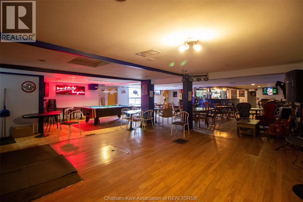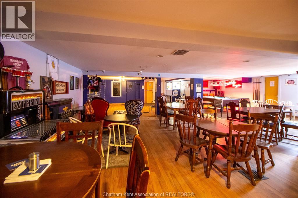 Own a piece of Chatham’s history with this incredible commercial property near downtown! Featuring an open-concept layout with a classic horseshoe bar, full kitchen, and walk-in cooler, this space is perfect for a restaurant, bar, or event venue. With a capacity of 149 guests, it offers ample room for dining and entertainment. The outdoor patio and private parking lot provide additional opportunities for expansion, whether for al fresco dining, events, or other business ventures. This prime location, rich in character and potential, is ready for your vision. Don’t miss out on this rare opportunity—schedule a tour today! *Property sold as is, where is, with no representations or warranties of any kind. Seller makes no representation regarding compliance with any municipal by-law, zoning, building code, property standards, work orders, permits, or any governmental or regulatory requirement. Buyer to satisfy itself as to all such matters prior to offer. (id:4555)