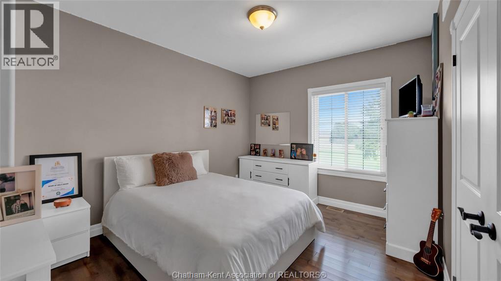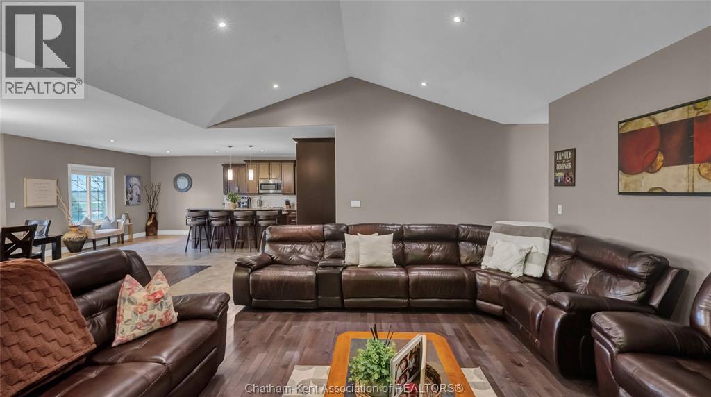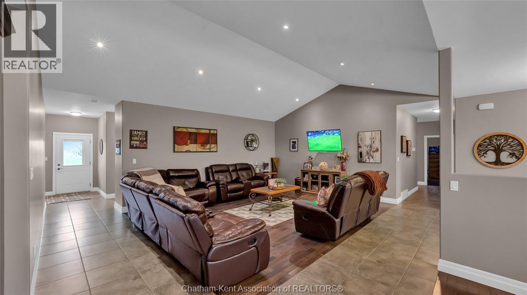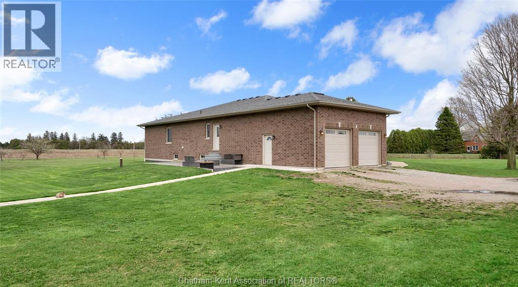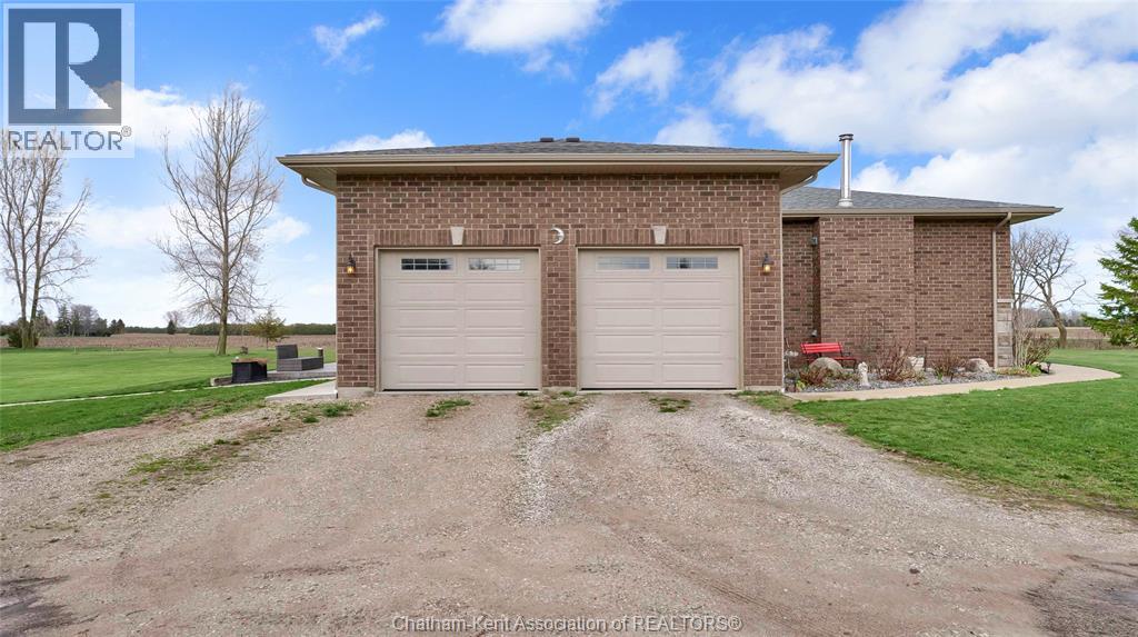 Welcome to your private retreat! This custom built ranch offers nearly 3,000 sq ft of thoughtfully designed living space, perfectly set on over 5 acres of prime land just outside of Chatham. Enjoy the best of both worlds, minutes to amenities and Highway 401, yet private enough to truly live your dream lifestyle. The outdoor space is a blank canvas, ready for your vision. A standout feature is the expansive 23' x 115' outbuilding, complete with its own well, electricity, concrete floor, and fenced exterior area, ideal for hobbies, storage, or what your imagination can drum up! Built in 2015, the home showcases a beautiful stone and brick exterior along with a spacious attached double car garage. Inside, a welcoming foyer opens into a bright, open concept living, kitchen, and dining area, perfect for everyday living and entertaining. Featuring 4 generously sized bedrooms and 2.5 bathrooms, this home offers space and comfort for the whole family. The mudroom includes a convenient rear entrance and direct access to the garage, which also provides interior access to the basement. Downstairs, the basement boasts over 10 foot ceilings and a cozy wood-burning fireplace, an ideal space to relax or customize to your needs. Additional features include: Geothermal heating and cooling, UV water filtration system, Hardwood and ceramic flooring throughout (no carpet), Two wells and a septic system. This is your opportunity to own a peaceful, versatile property with endless potential. Don’t miss your chance! Your dream lifestyle awaits! Home is Where the Hart is! (id:4555)