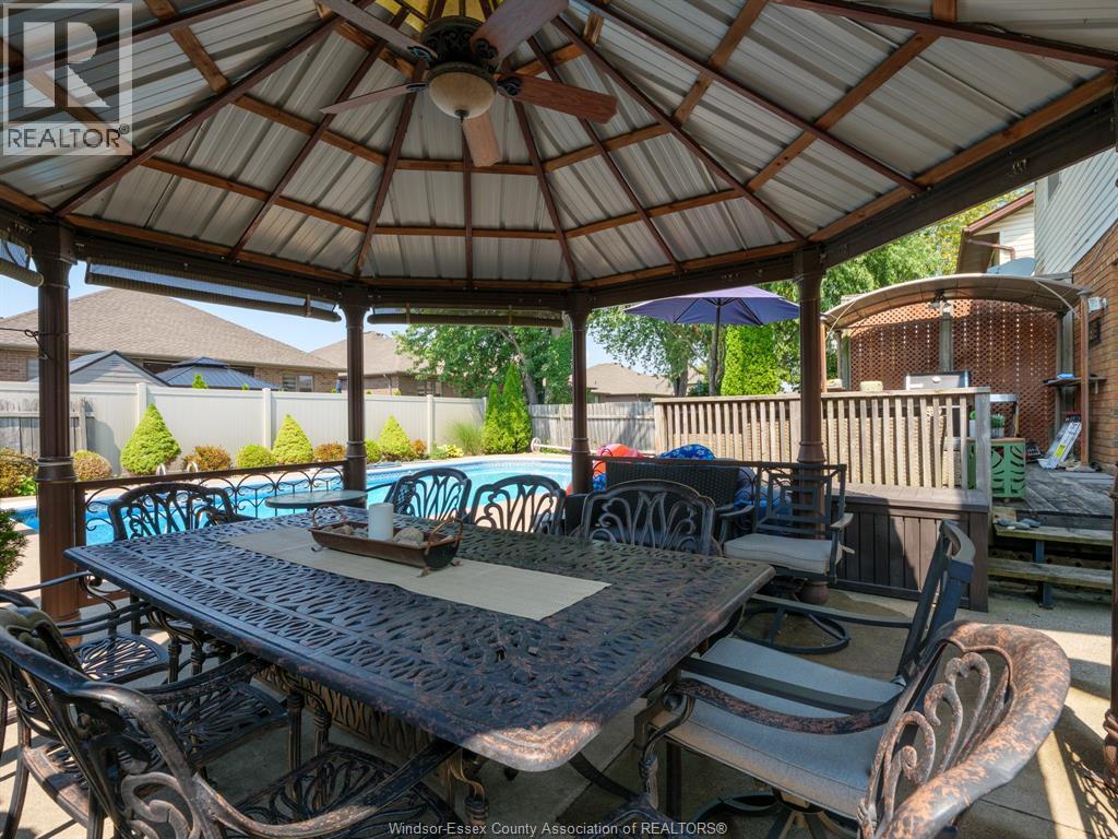 THIS TOWN OF TECUMSEH BEAUTY IS READY FOR ITS NEW FAMILY. MAIN FLOOR CONSISTS OF LR, DR, KIT WITH LARGE ISLAND & GRANITE TOPS, FAMILY ROOM TURNED INTO THEATRE ROOM, 2 PC BATH & LAUNDRY AREA. 2ND FLOOR HAS 4 BEDROOMS, PRIMARY WITH EXTERIOR BALCONY OVER LOOKING BACKYARD AND AN ENSUITE BATH(BOTH 2ND FLOOR BATHS RENO'D APPROX 2023). BASEMENT HAS HUGE FINISHED AREA WITH POSSIBLE BEDROOM USE, OFFICE AREA, 3 PC BATH & UTILITY ROOM. AMAZING BACKYARD HAS LARGE WOOD DECK, CONCRETE PATIO WITH GAZEBO, A 18'X36' INGROUND SALT WATER POOL WITH 8' DEEP END(NEW HEATER, SALT GENERATOR & SAND FILTER 2025, PUMP 2023). FURNACE 2013, AIR CONDITIONER 2025, ROOF 2016, WINDOWS & PATIO DOOR 2011 ... ALL DATES ARE APPROX. (id:4555)